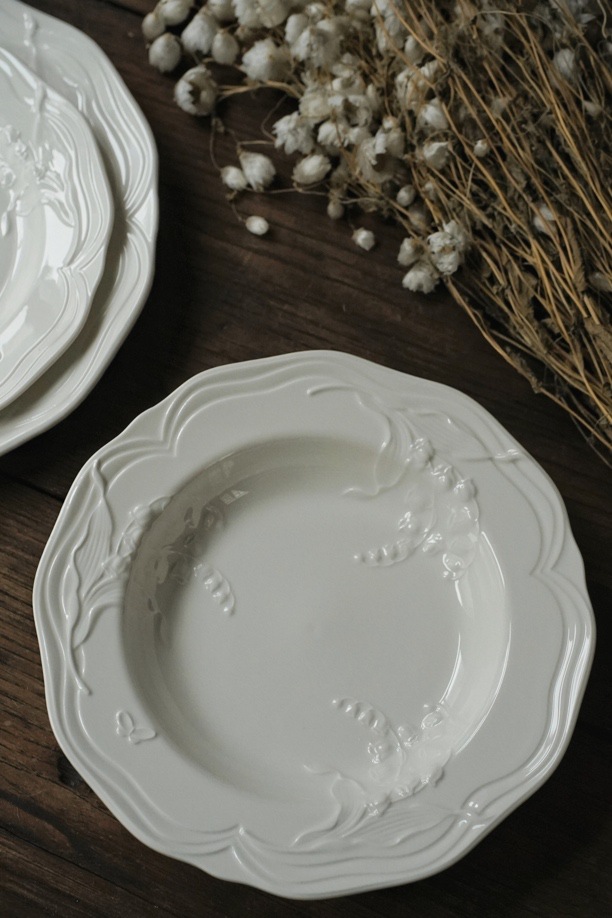 • 8.5 인치 순수한 흰색 밀짚 모자 릴리 오브 더 밸리 딥 플레이트