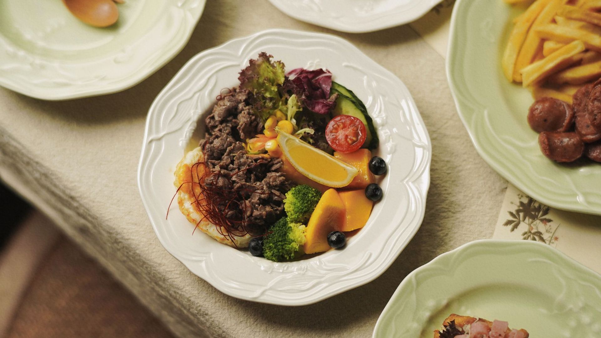 레트로 스타일 세라믹 식기 Linglan 신선한 시리즈 케이크 가정용 스테이크 파스타 디저트 플랫 플레이트 딥 플레이트