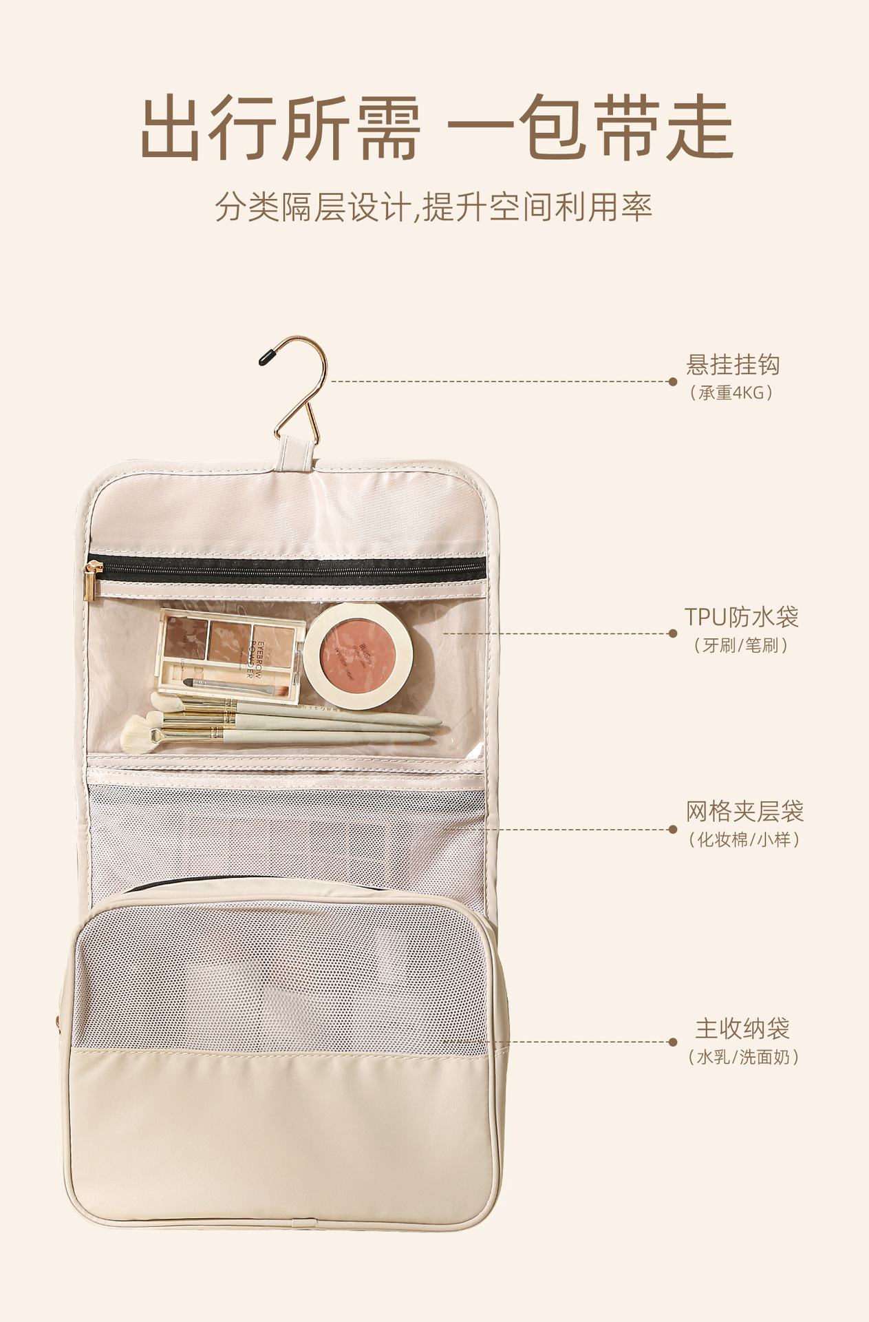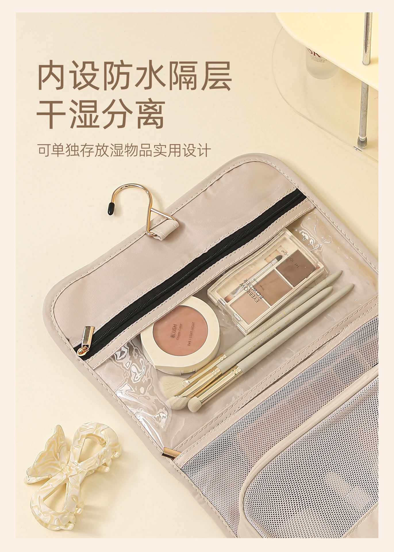 스타 워시 백 후크 습식 및 건식 분리 방수 대용량 저장 가방 세척 화장품 가방 여행 보관