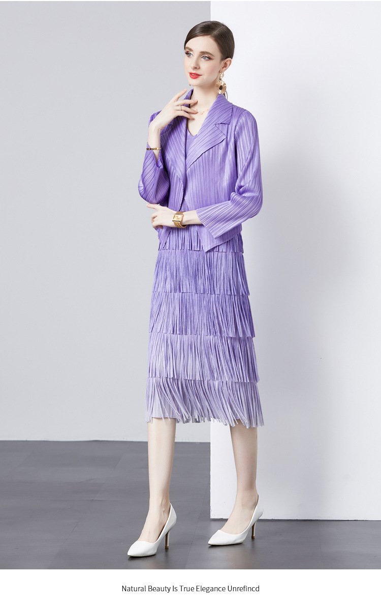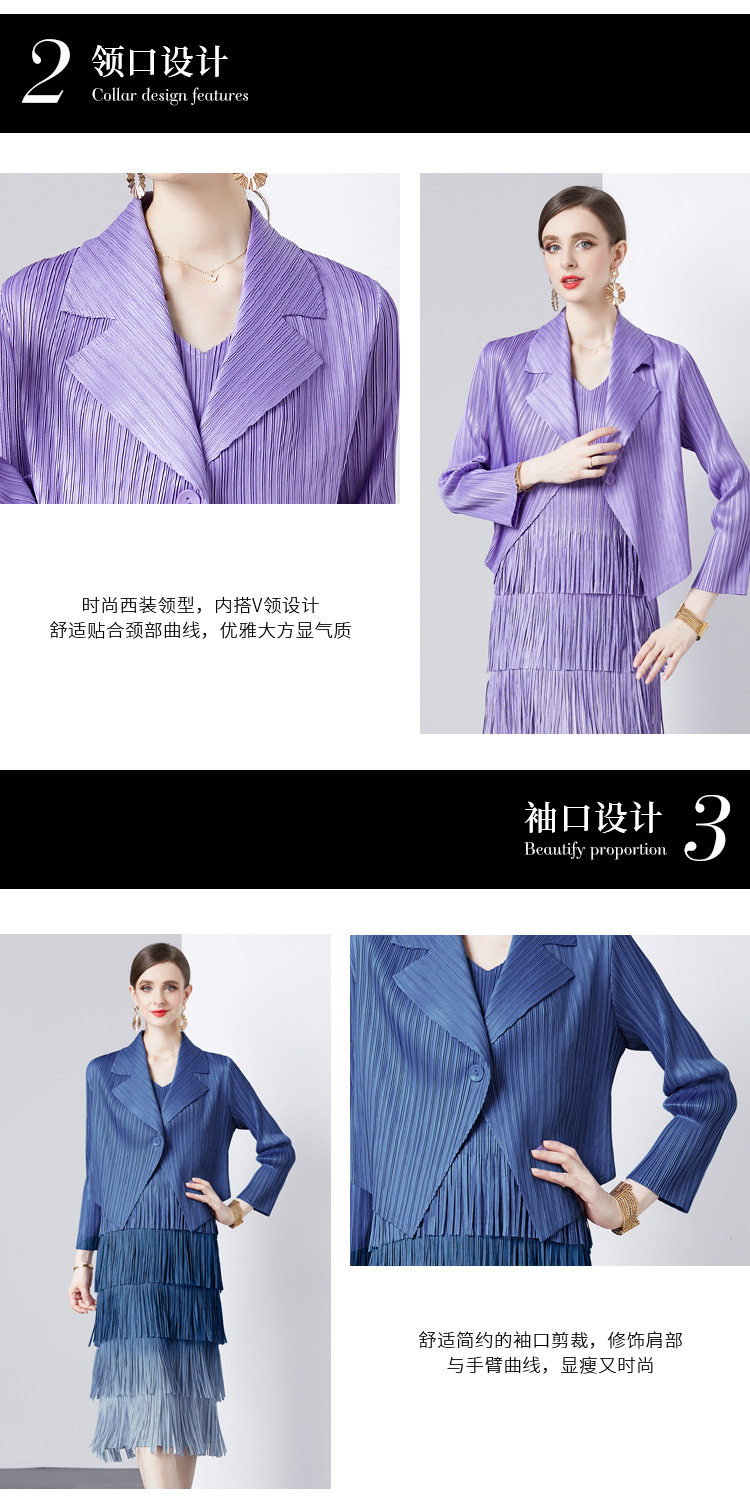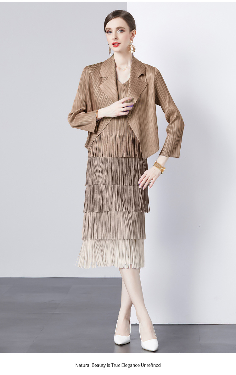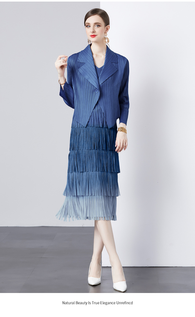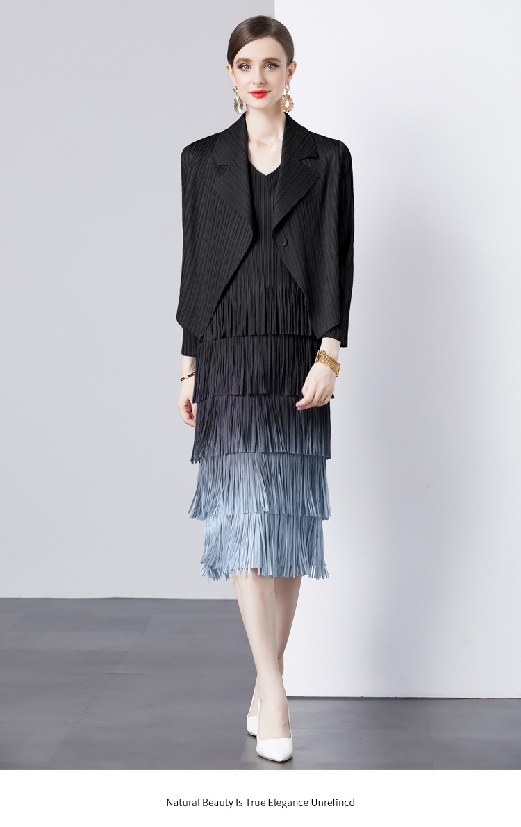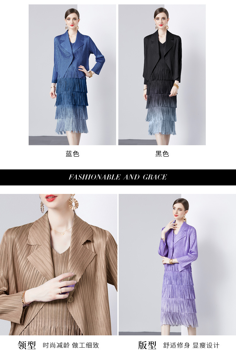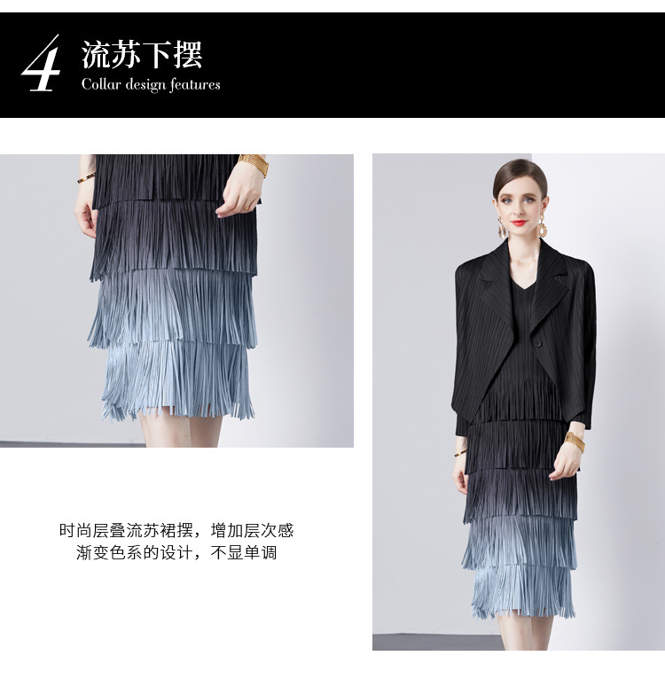 패션 세트 재킷 투피스 세트 Sanzhai 주름 사교계 기질 V 넥 케이크 스커트 술 그라데이션 컬러 원피스스토어 가기