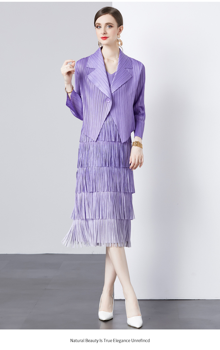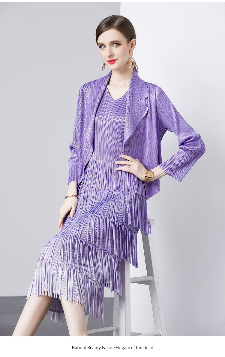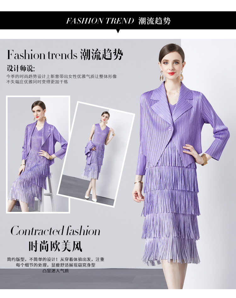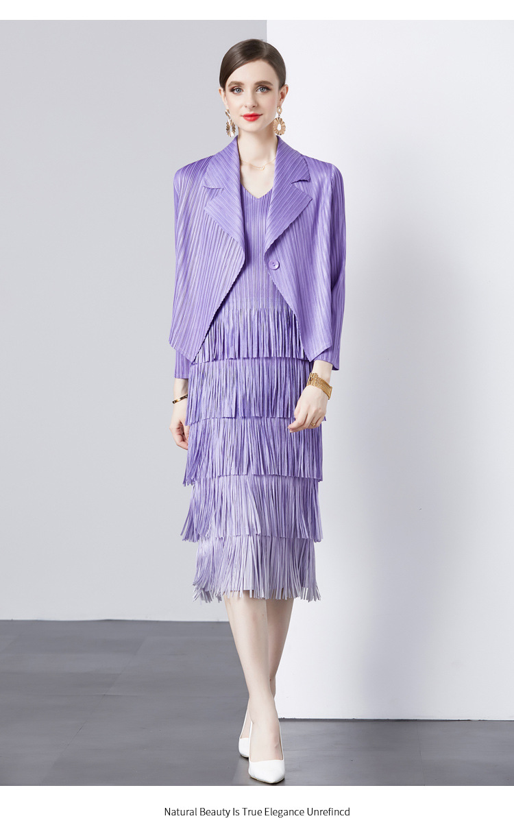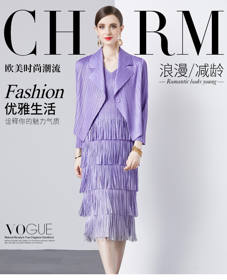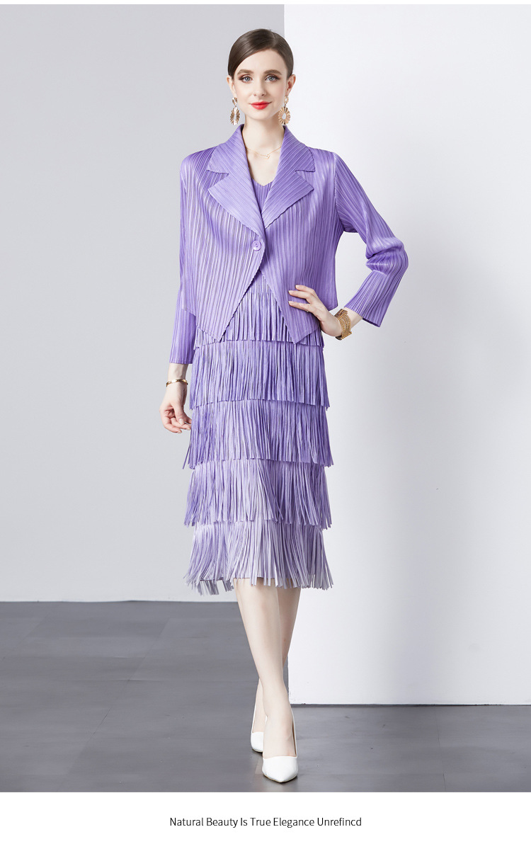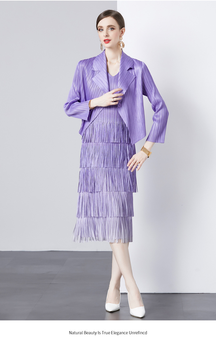 패션 세트 재킷 투피스 세트 Sanzhai 주름 사교계 기질 V 넥 케이크 스커트 술 그라데이션 컬러 원피스스토어 가기