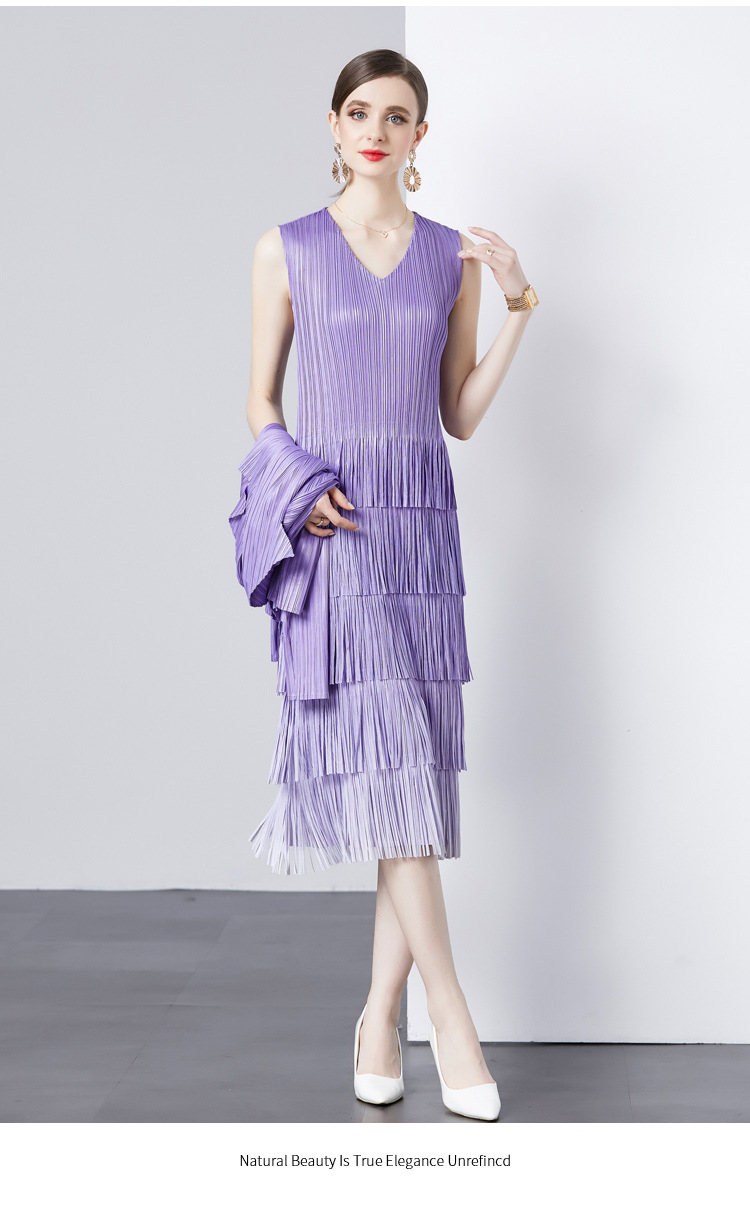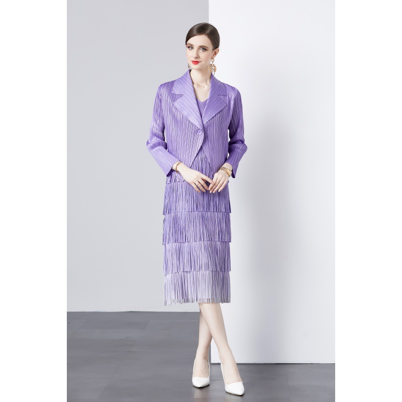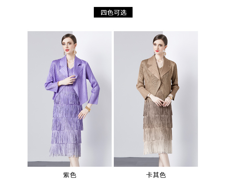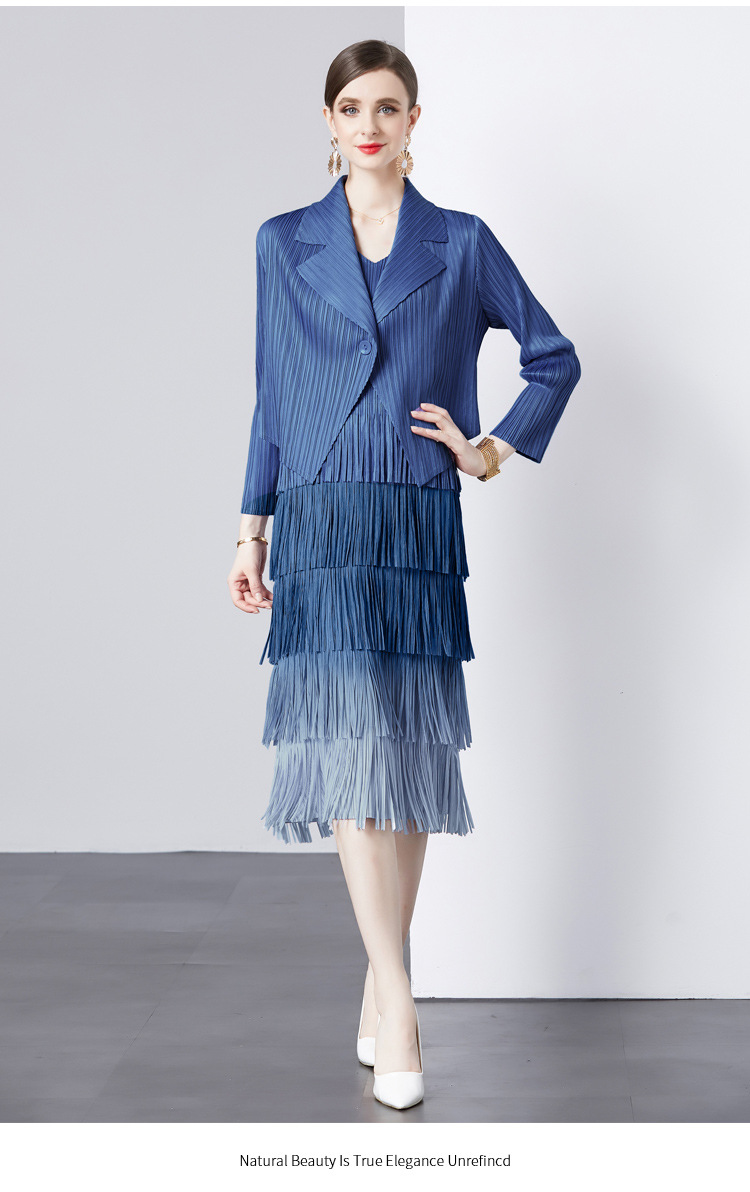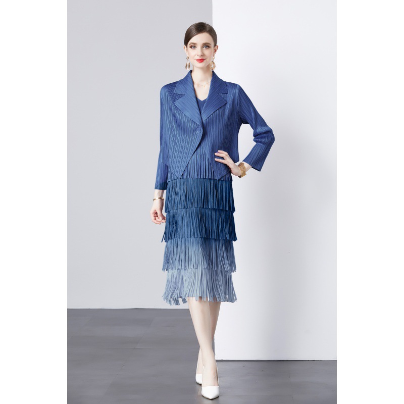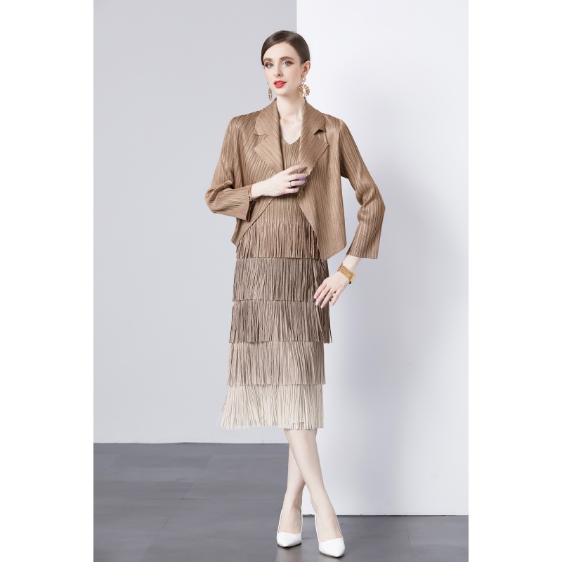 패션 세트 재킷 투피스 세트 Sanzhai 주름 사교계 기질 V 넥 케이크 스커트 술 그라데이션 컬러 원피스