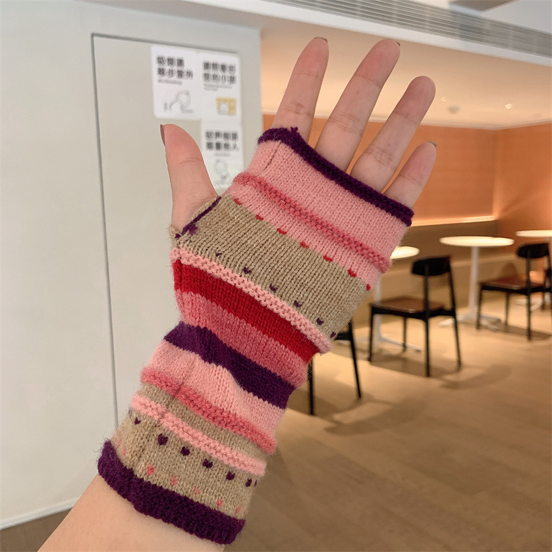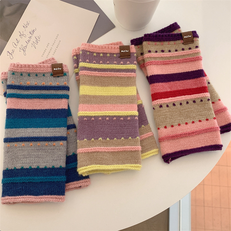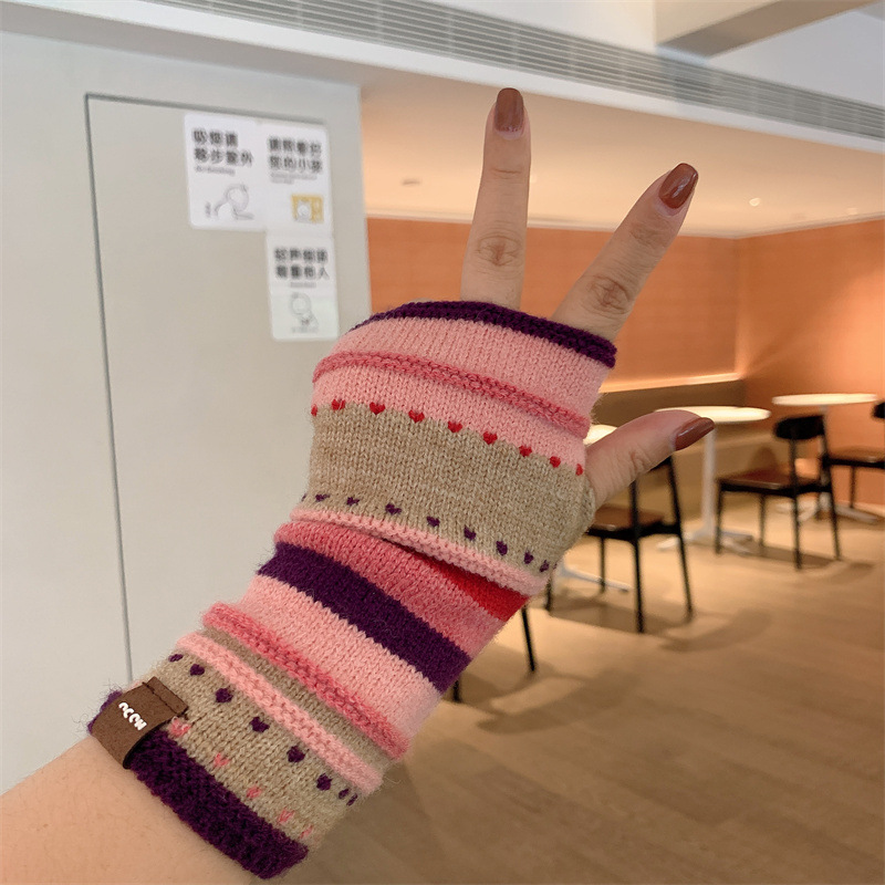 가을과 겨울 두꺼운 따뜻한 반 손가락 니트 장갑 여성 학생들이 열린 손가락 터치 스크린 손목 밴드 컬러 울 오버 셀브를 쓰고 있습니다.스토어 가기