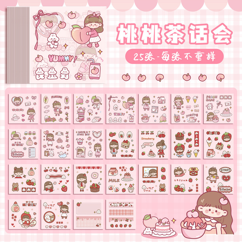 수첩 스티커 소녀 어린이 수첩 스티커 투명 스티커 세트 100장 만화 물컵 귀여운스토어 가기