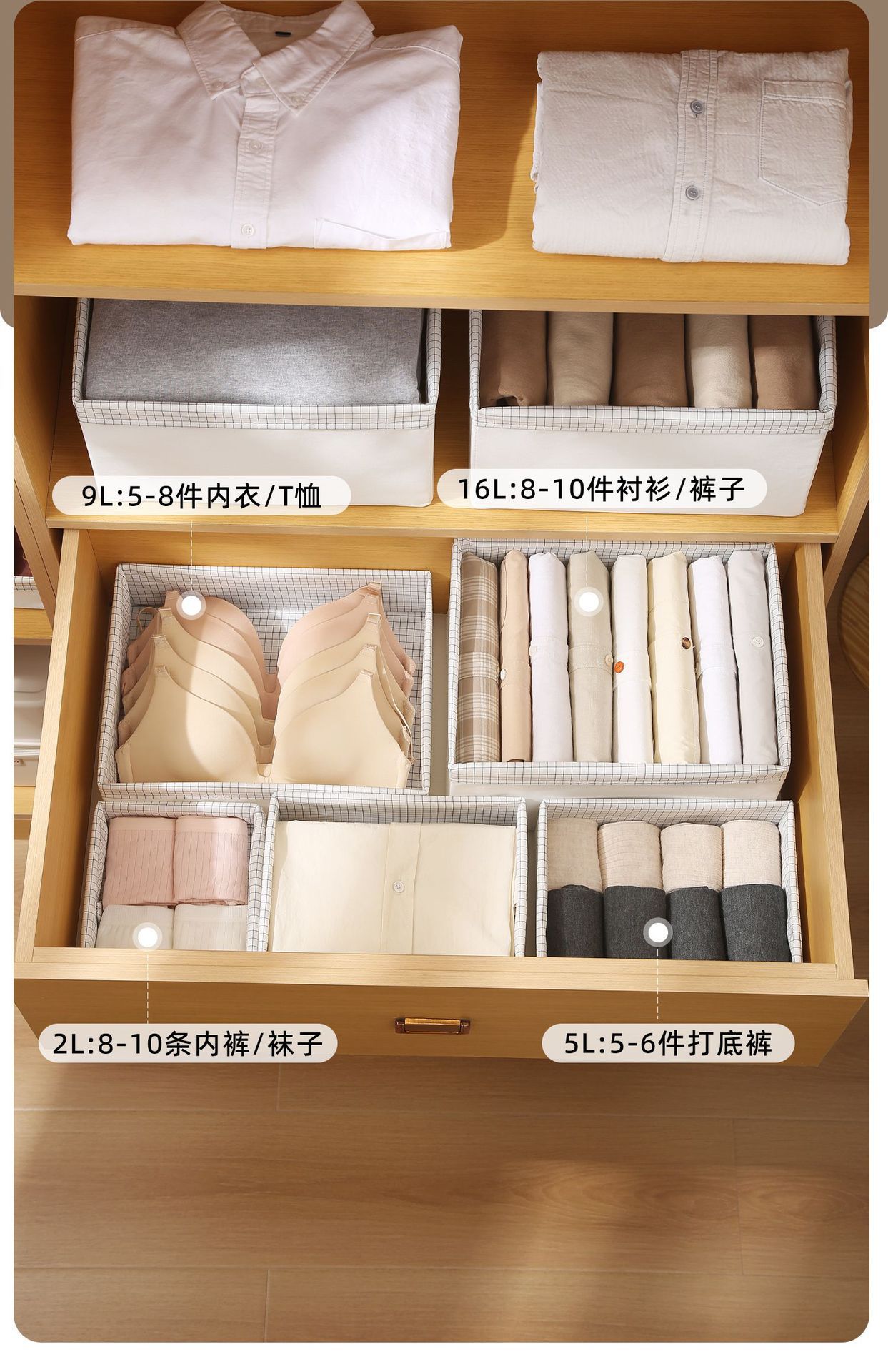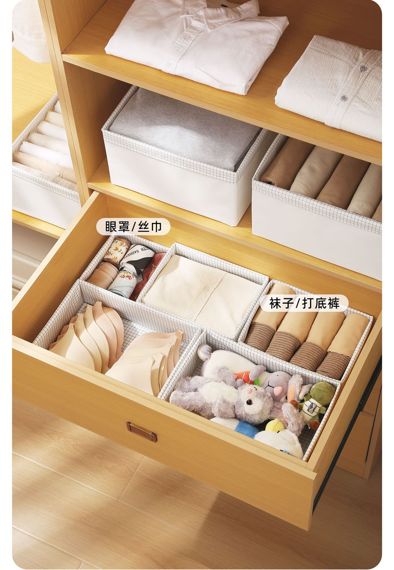 직물 저장 상자 가정용 침실 옷 접이식 구성 바구니 기숙사 서랍 속옷 양말 보관 상자