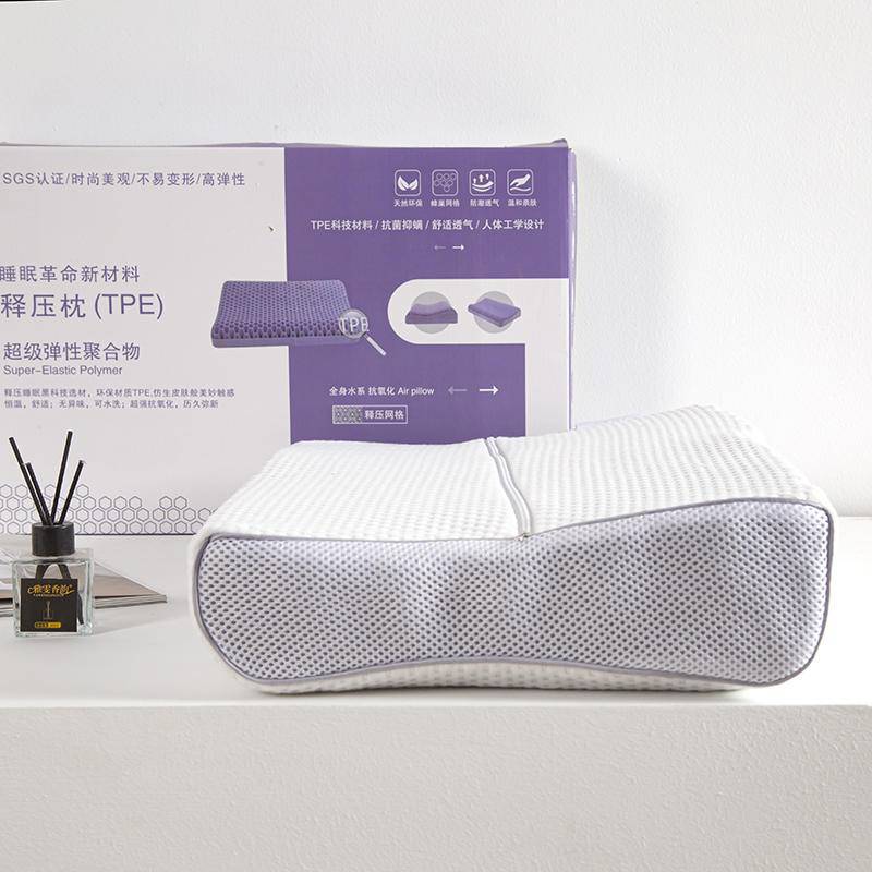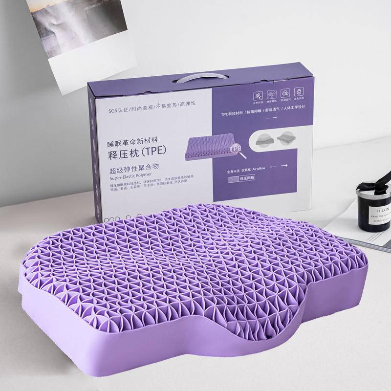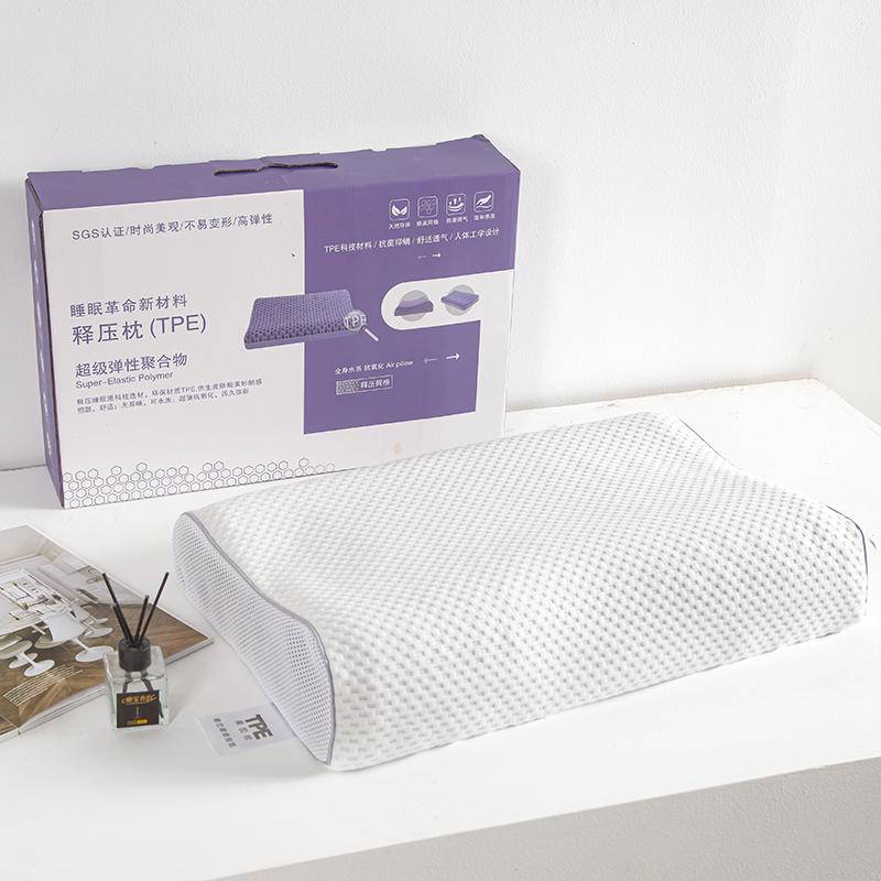 새로운 TPE 베개 펙틴 감압 베개 블랙 기술 제로 압력 실리콘 베개 TPE 비 압력 목 베개 하이 퀄리티