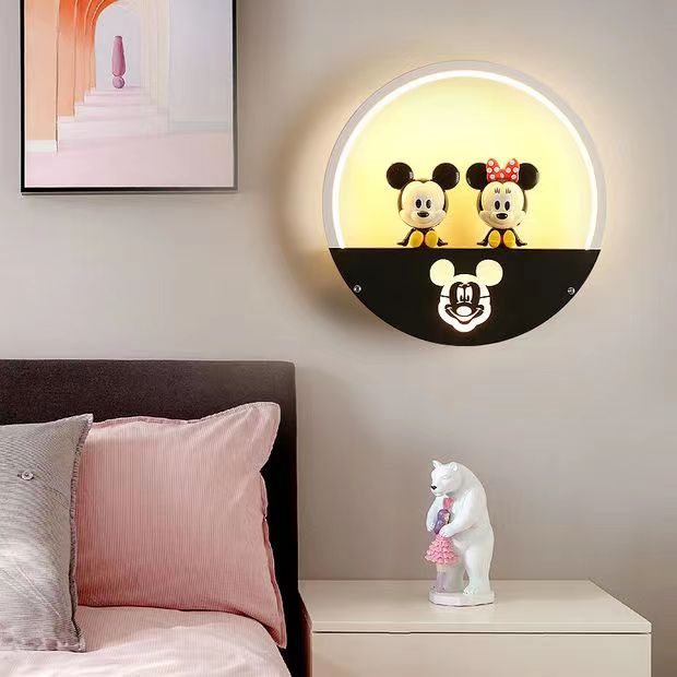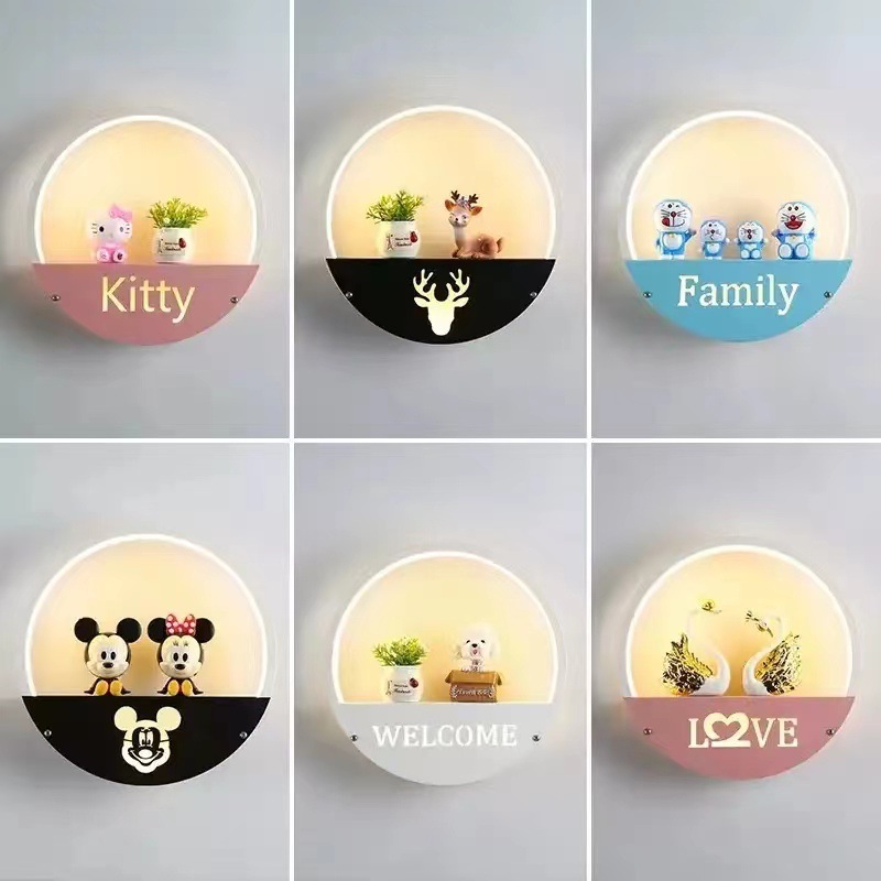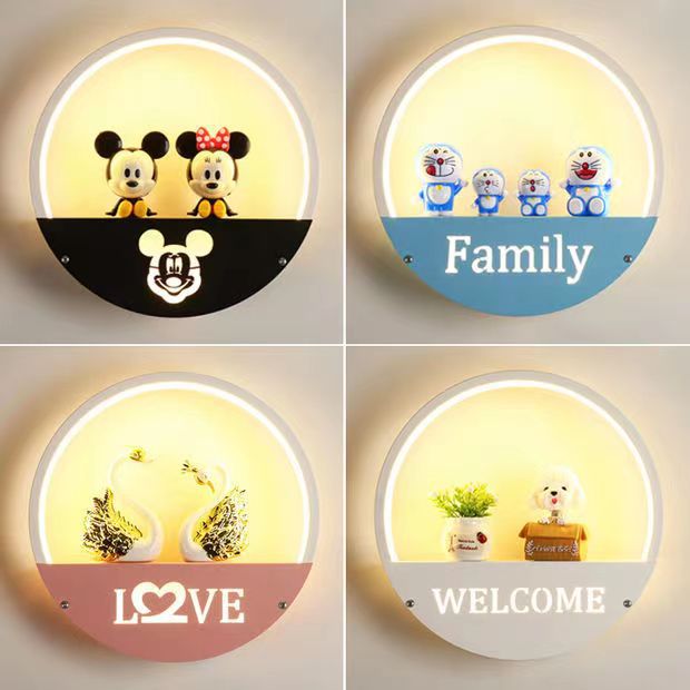 만화 어린이 방 침대 옆 벽 램프 현대 미니멀 램프 귀여운 만화 소년과 소녀 따뜻한 침실 벽 램프스토어 가기