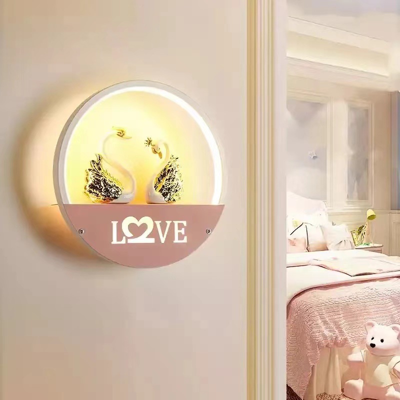 만화 어린이 방 침대 옆 벽 램프 현대 미니멀 램프 귀여운 만화 소년과 소녀 따뜻한 침실 벽 램프