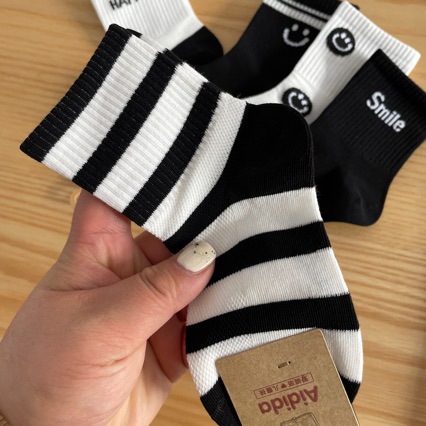 어린이 양말 봄과 여름 새로운 중반 송아지 양말 하프 메쉬 흑백 문자 웃는 얼굴 양말 인기 온라인 도매