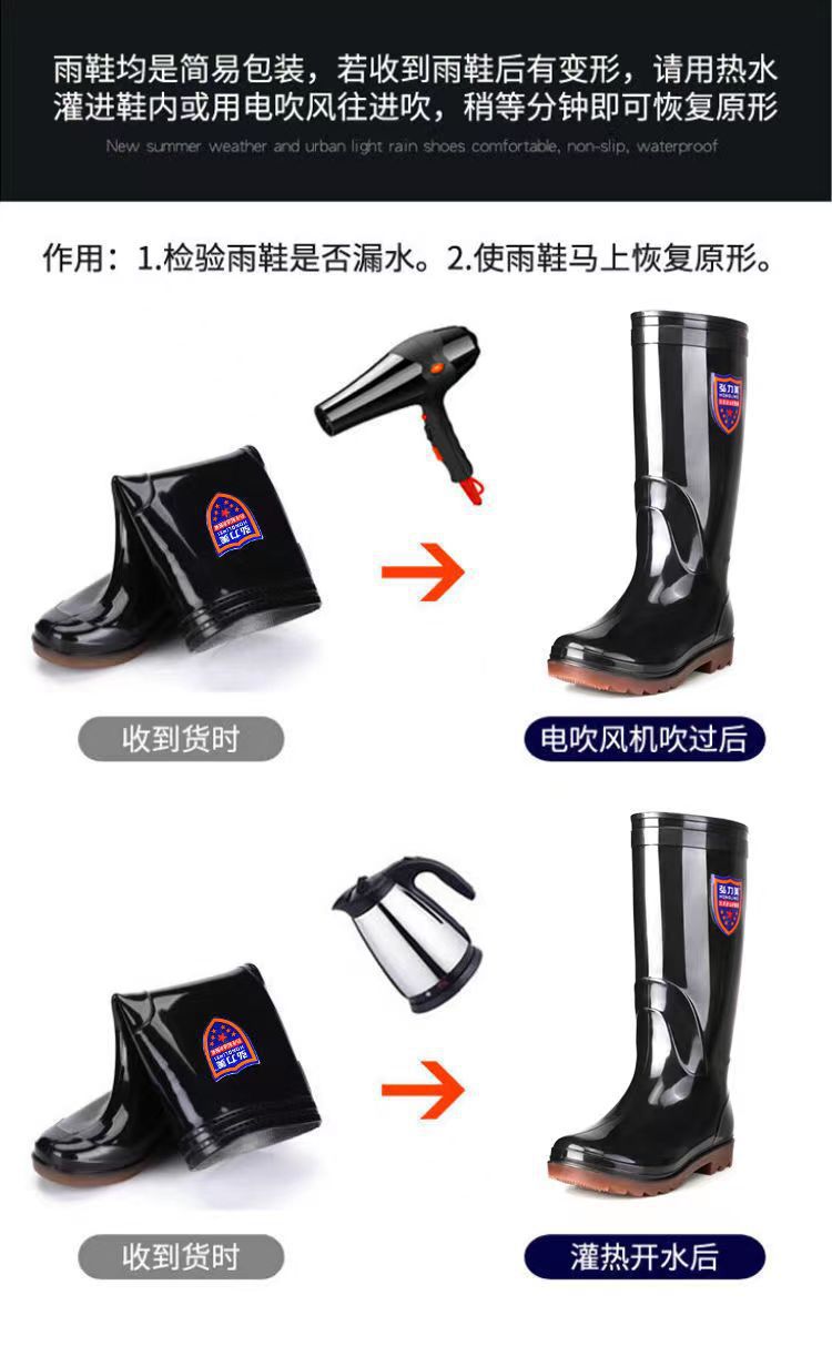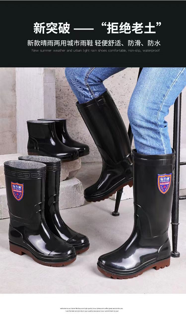 비 장화는 힘줄 바닥 노동 보호 남성용 미끄럼 방지 작업 고무 고등학교 짧은 기모 워터 부츠 방수 신발 남성스토어 가기