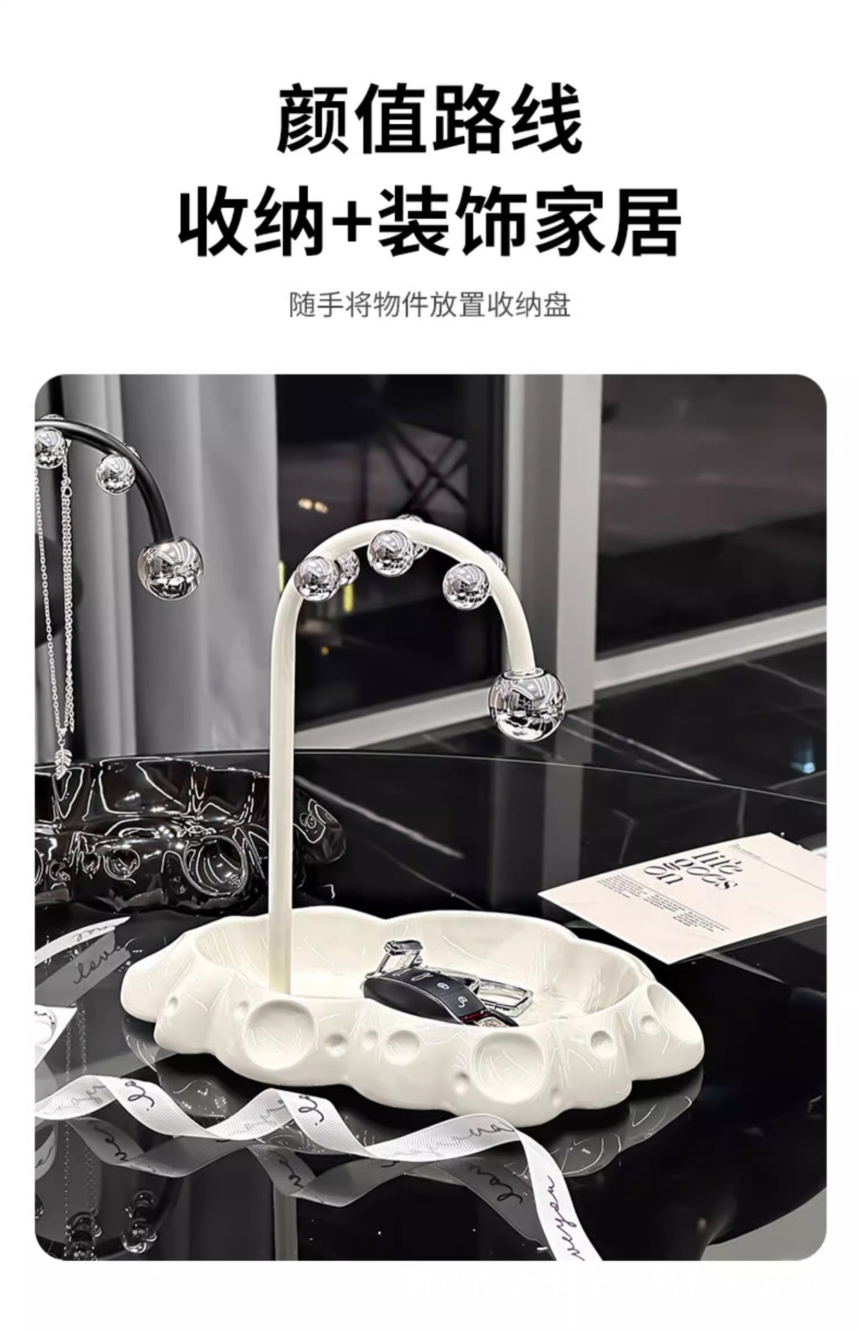 입구 입구 저장 랙 높은 가치 가벼운 럭셔리 세라믹 데스크탑 키 보석 보관 상자 하이 엔드 장식품