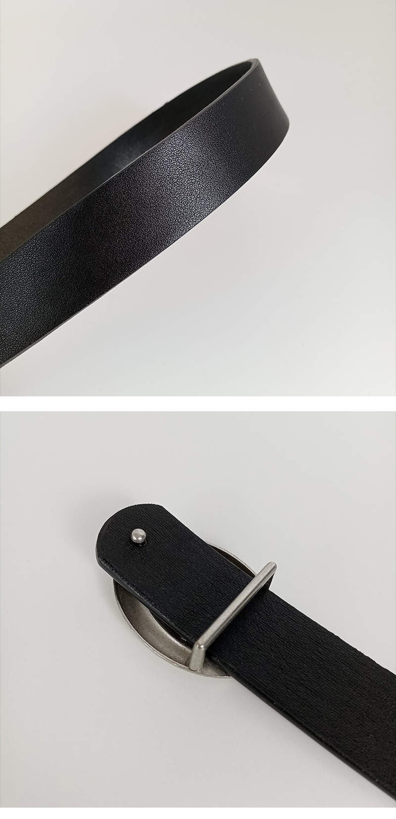 • 디스트레스드 실버 버클 + 블랙 벨트