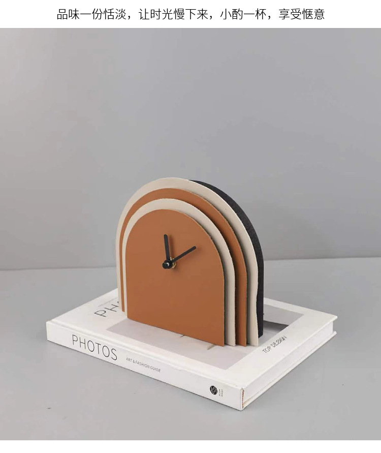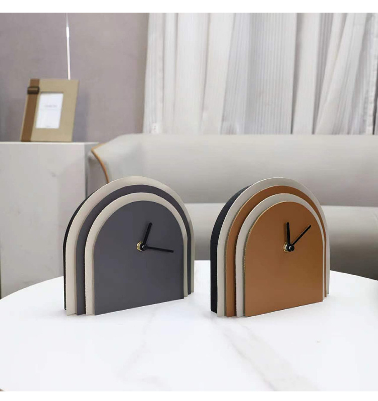 유럽 스타일의 가벼운 고급 멀티 레이어 가죽 아치 시계 시계 시계 장식 거실 입구 호텔 모델 룸 홈 장식스토어 가기