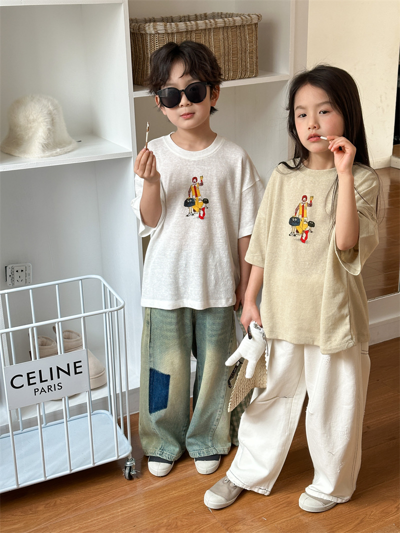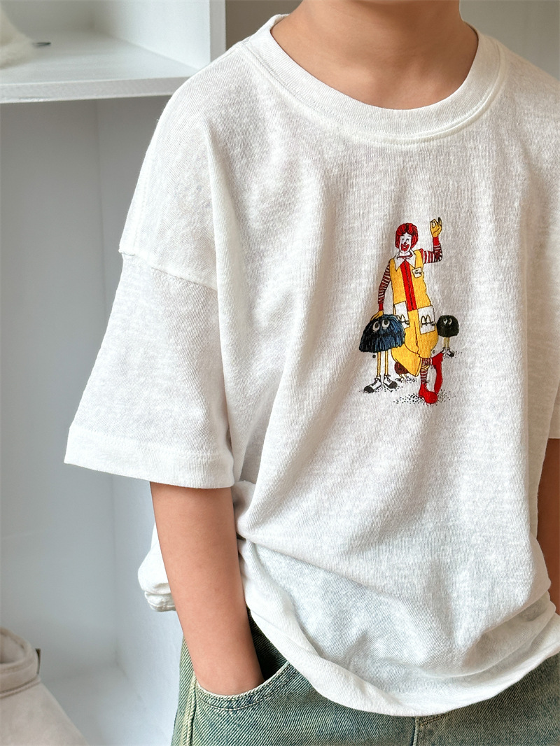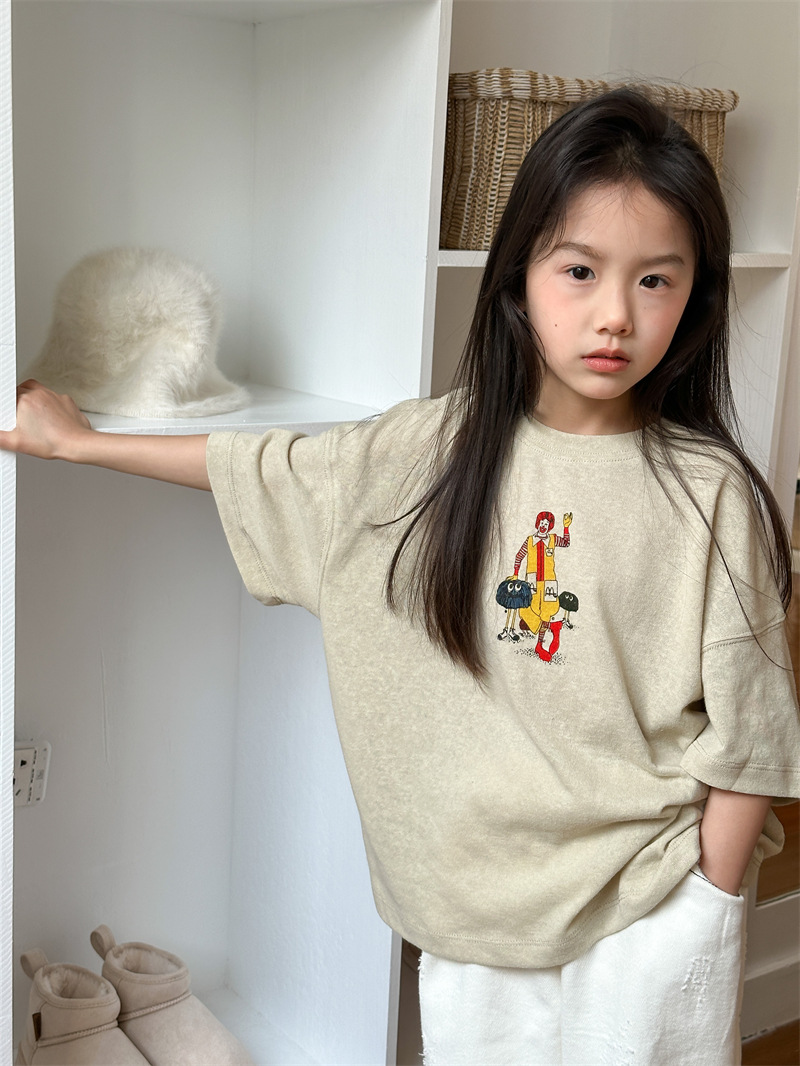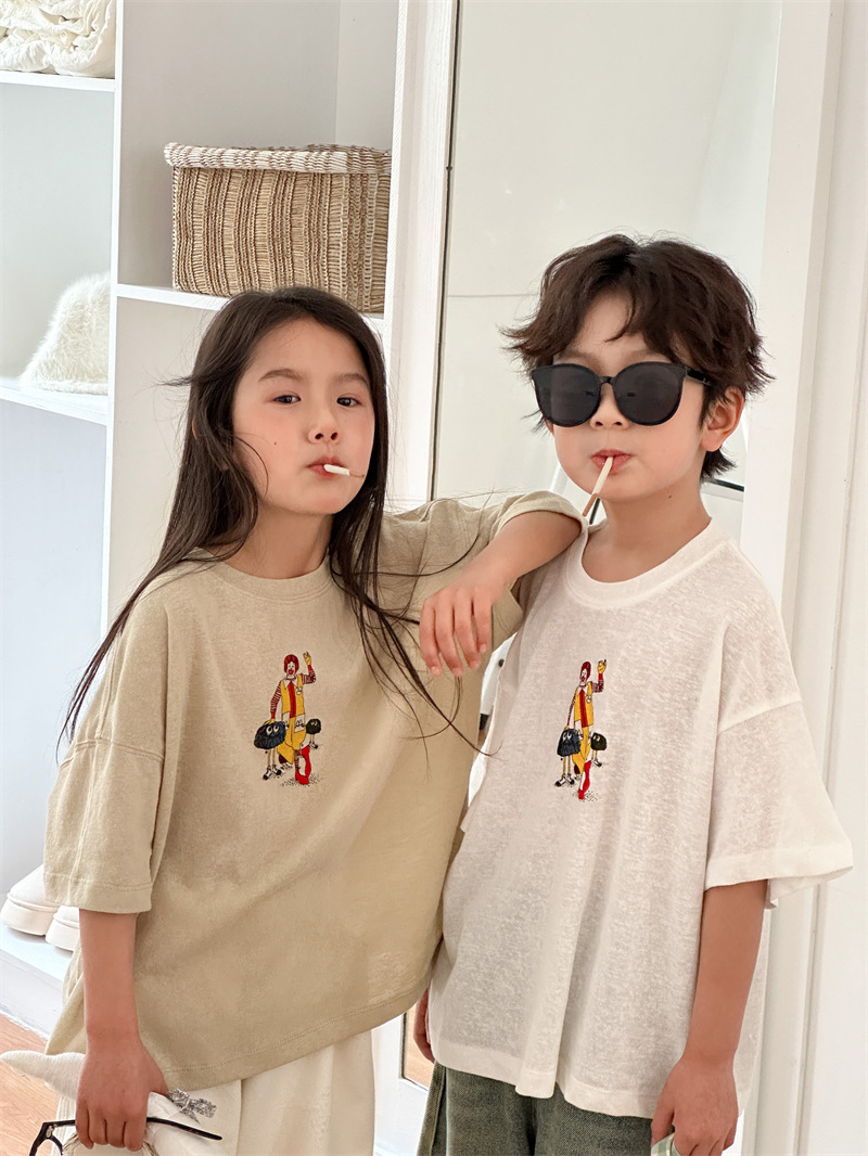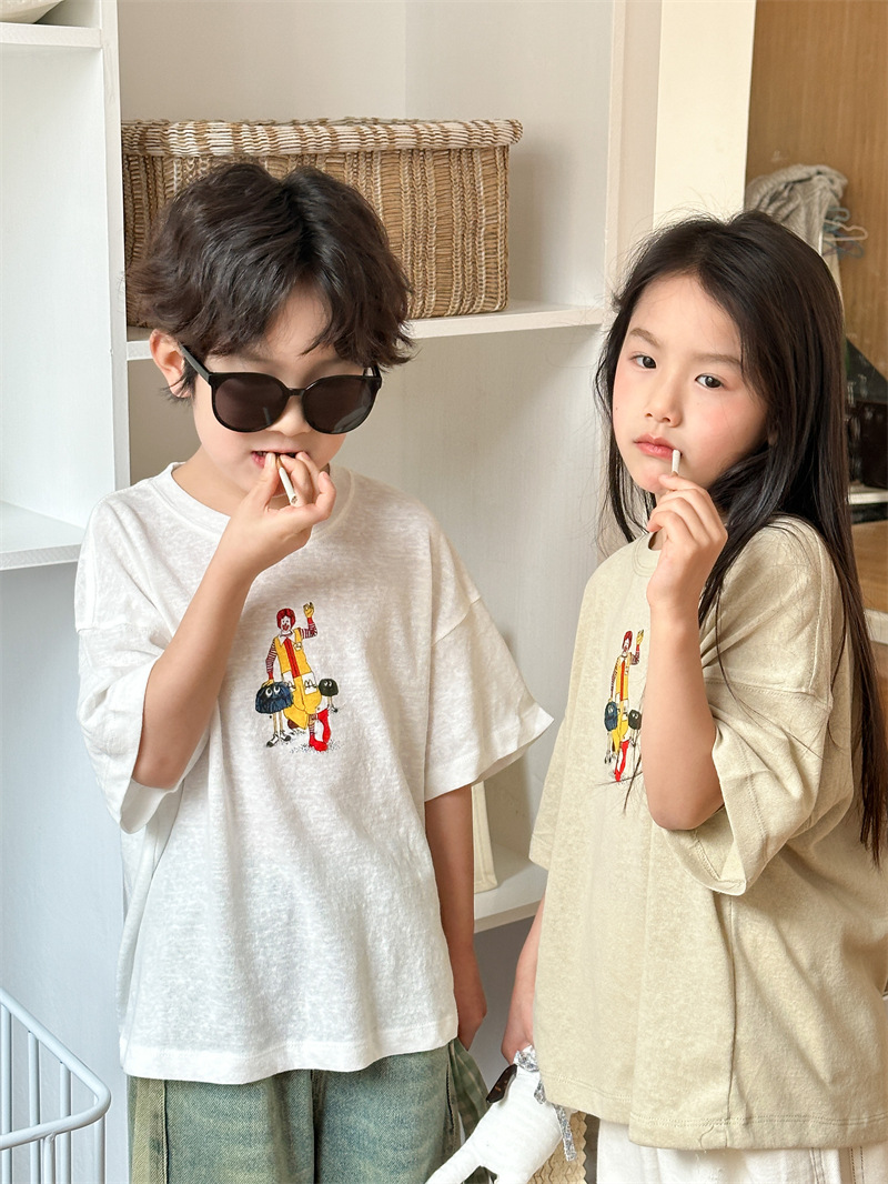 2025 여름 새로운 한국어 버전 어린이 다목적 반팔 소년 소녀 만화 프린트 티셔츠 귀여운 광대 반팔