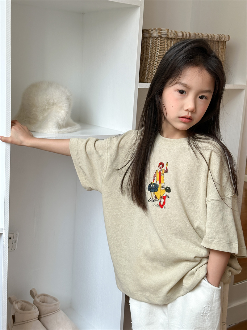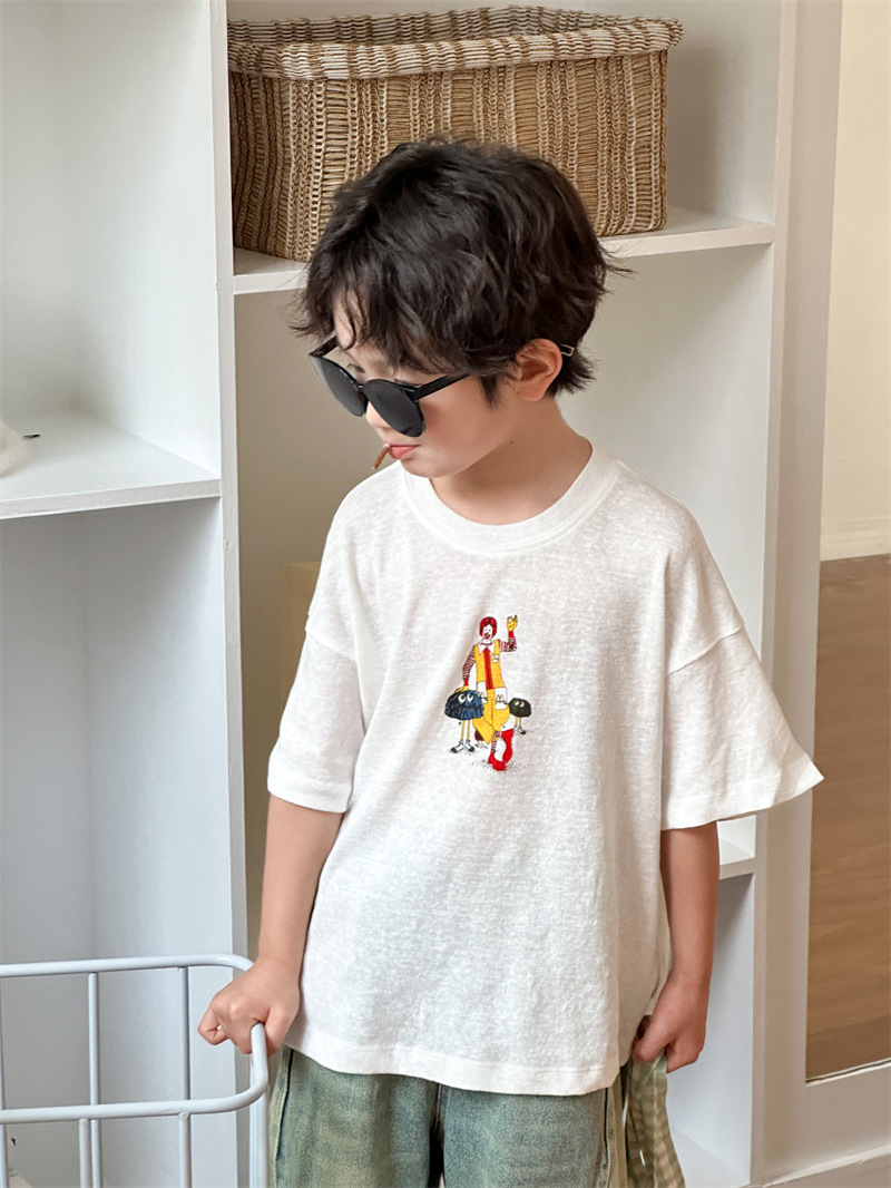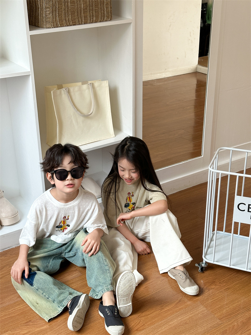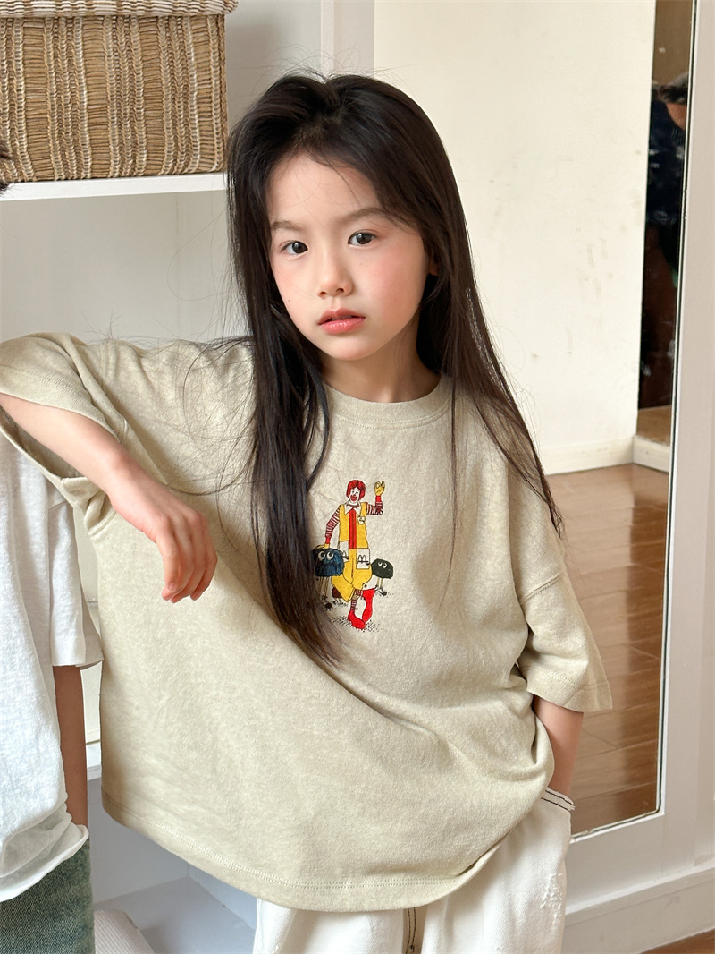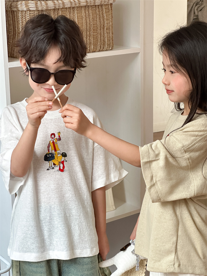 2025 여름 새로운 한국어 버전 어린이 다목적 반팔 소년 소녀 만화 프린트 티셔츠 귀여운 광대 반팔