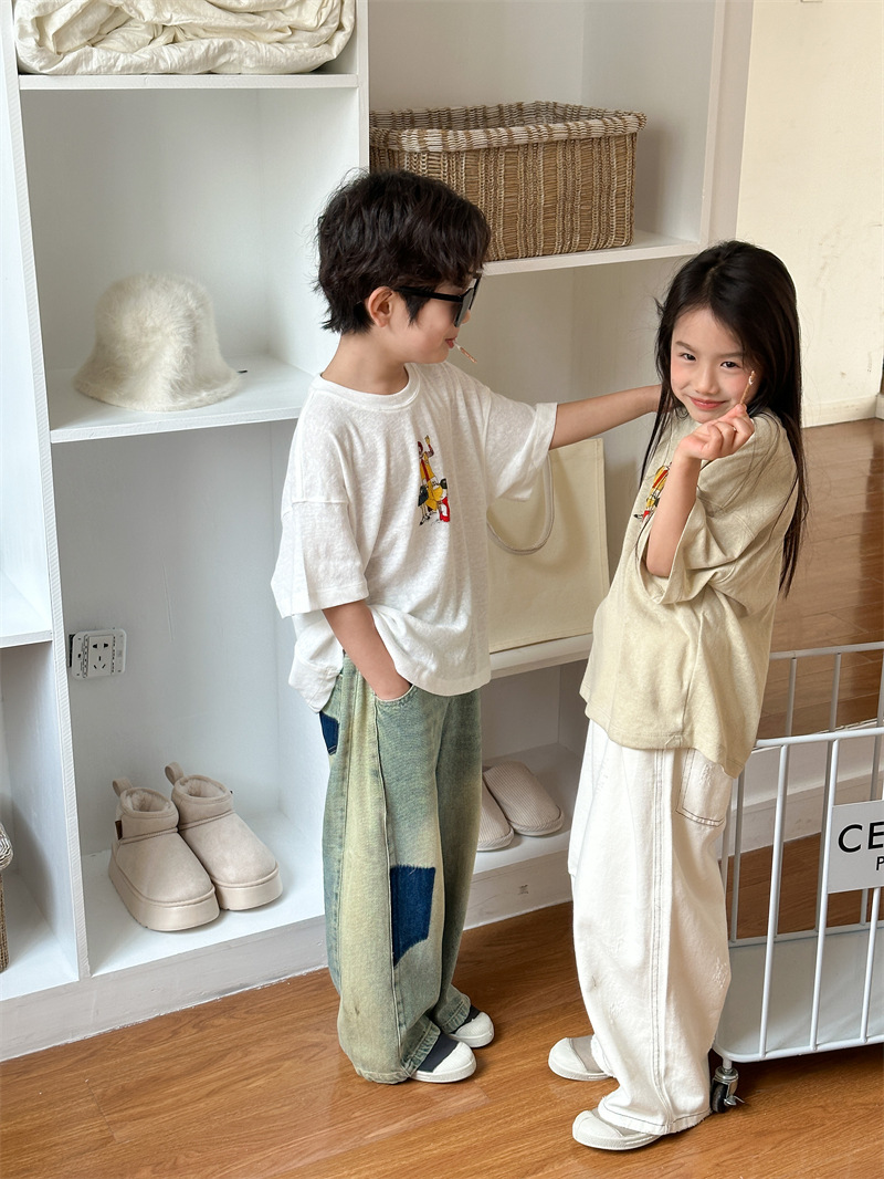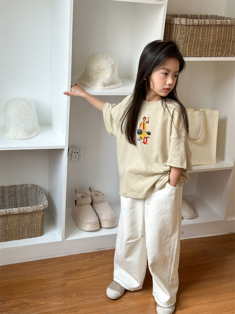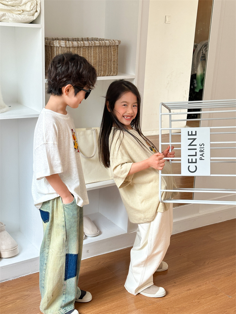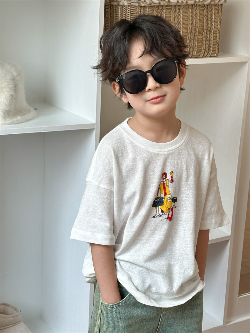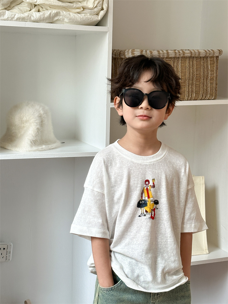 2025 여름 새로운 한국어 버전 어린이 다목적 반팔 소년 소녀 만화 프린트 티셔츠 귀여운 광대 반팔