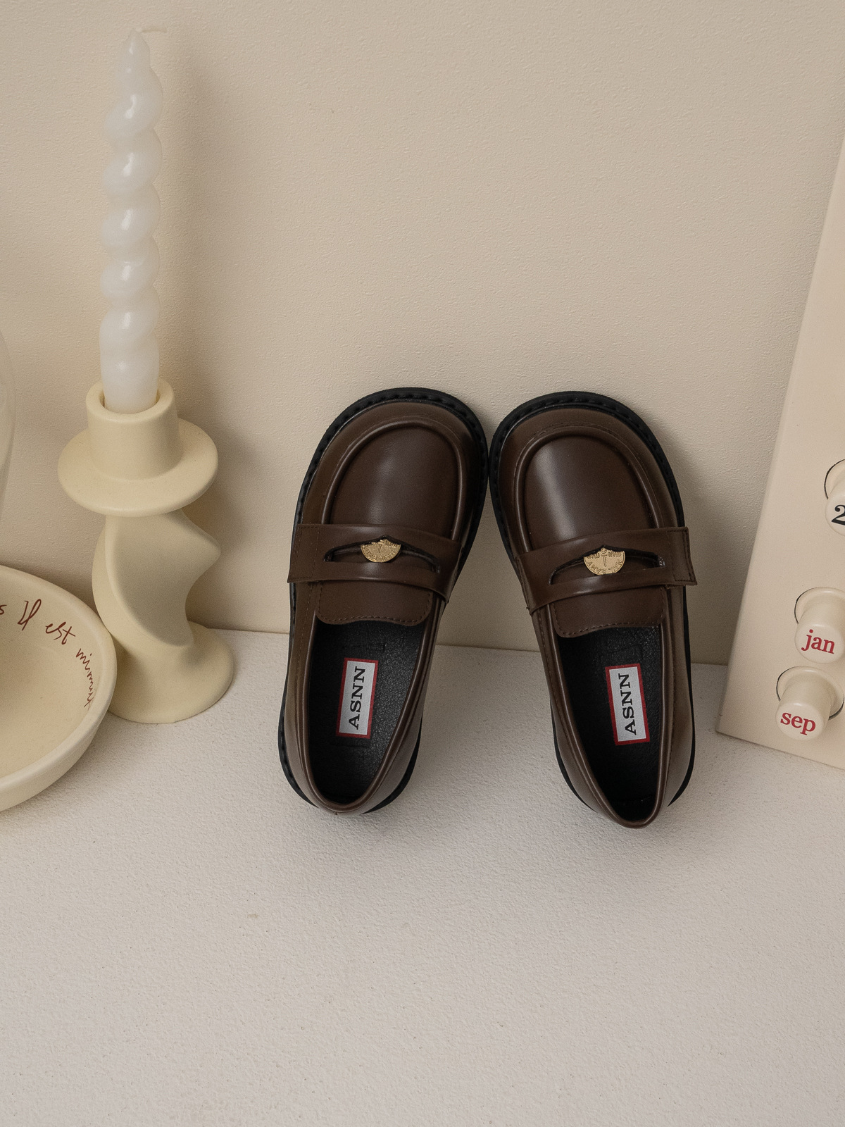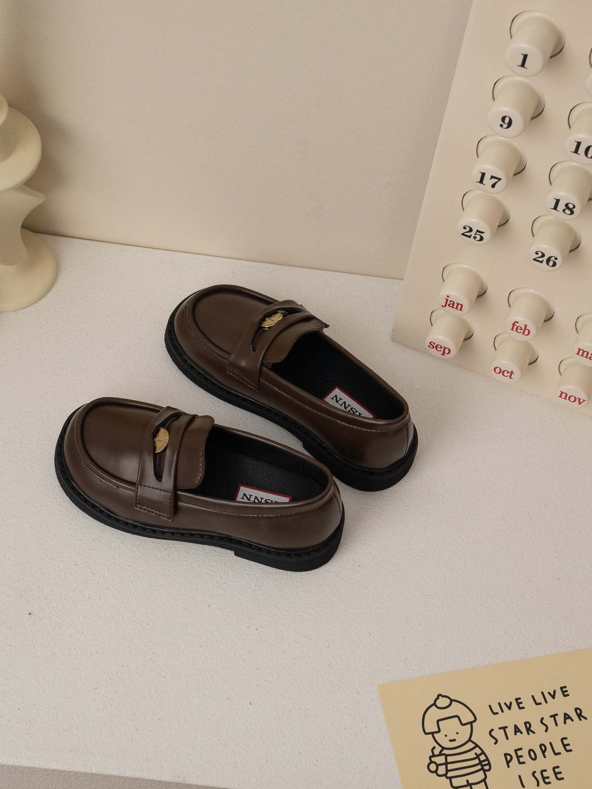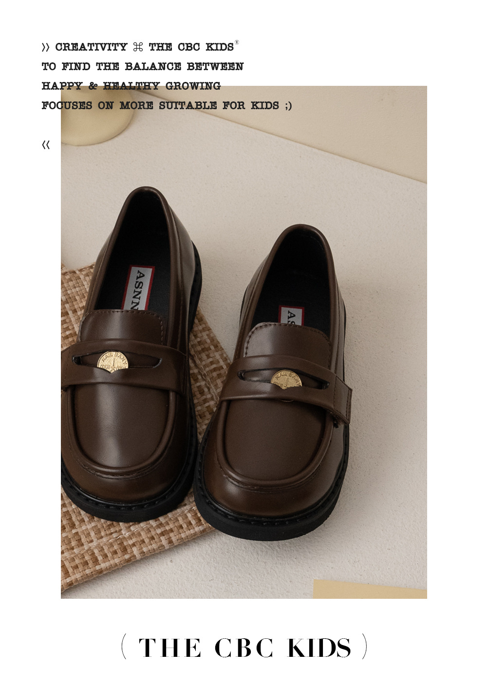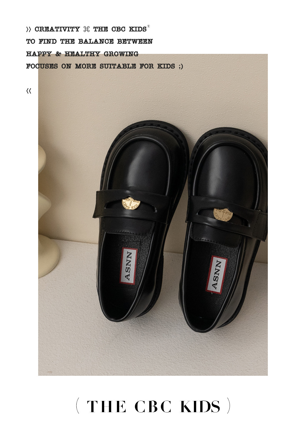 XSHX "골드 코인 LOAF" 아동 로퍼 봄 가을 신작 여아 복고풍 JK 대학 스타일 가죽 신발