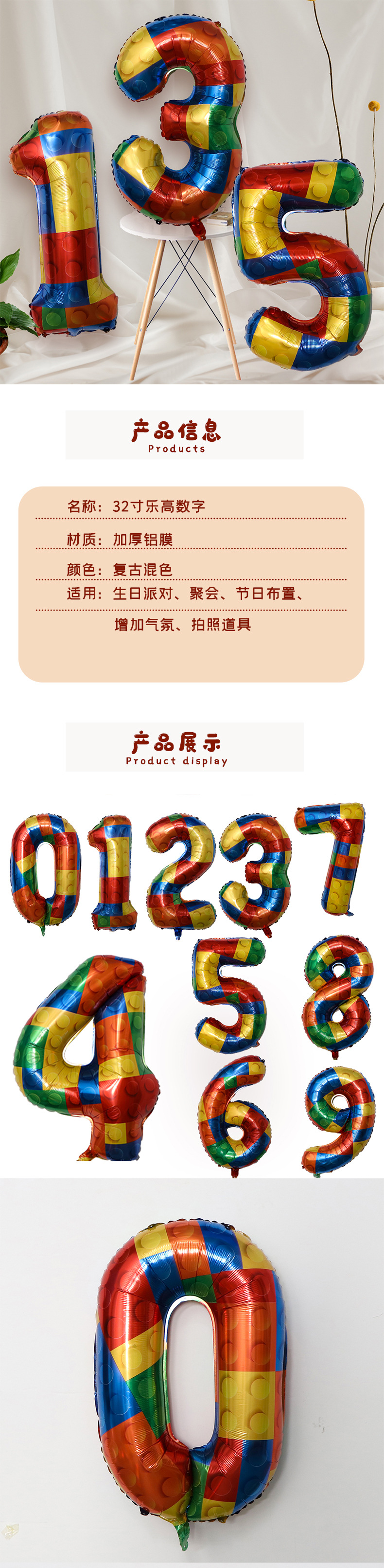 디지털 풍선 레고 알루미늄 필름 풍선 도매 크로스보더 장식 독립 포장 가능 알루미늄 필름 풍선 숫자스토어 가기