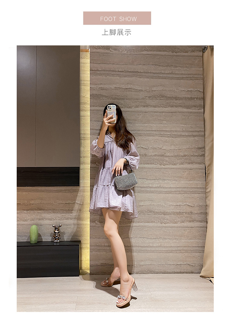 2023 여름 새로운 원 스트랩 하이힐 슬리퍼 방수 플랫폼 크리스탈 청키 힐 미드 힐 스몰 사이즈 투명 샌들 여성용스토어 가기
