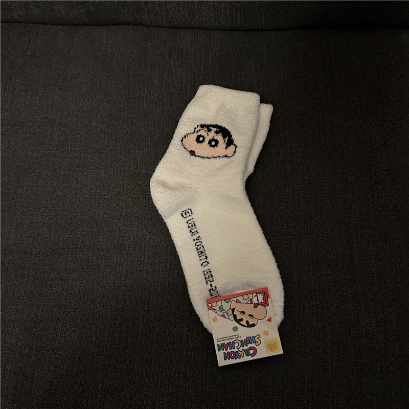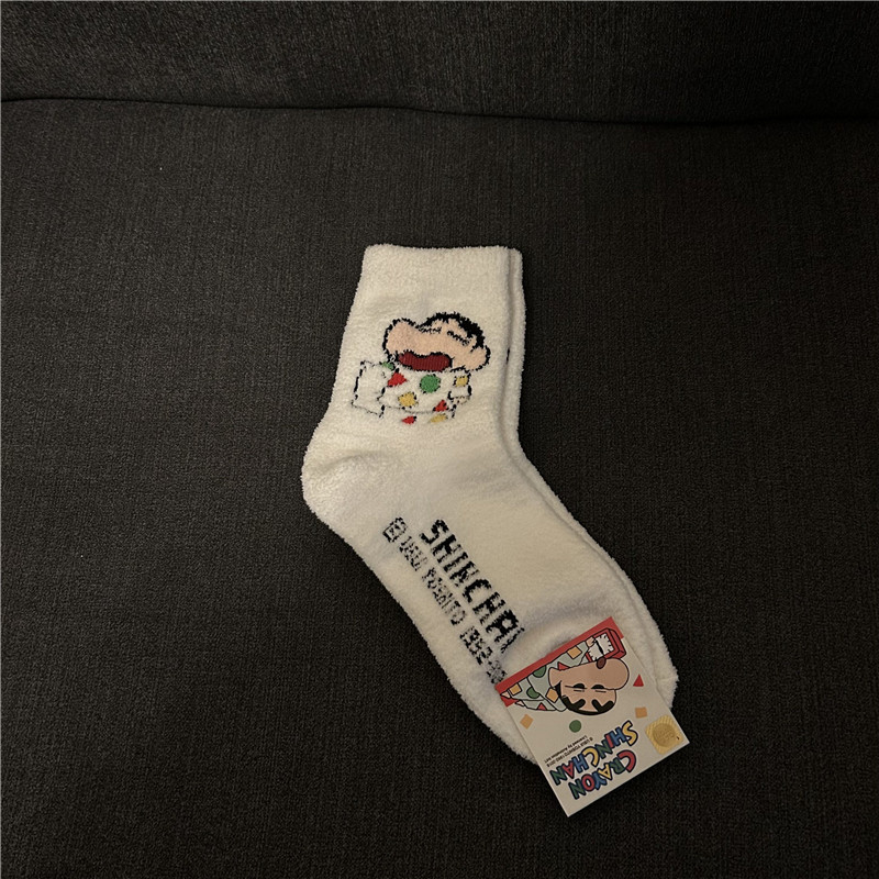 한국 수입 노방구 여성 봄, 가을, 겨울 만화 산호 벨벳 귀여운 양말 N-W-005