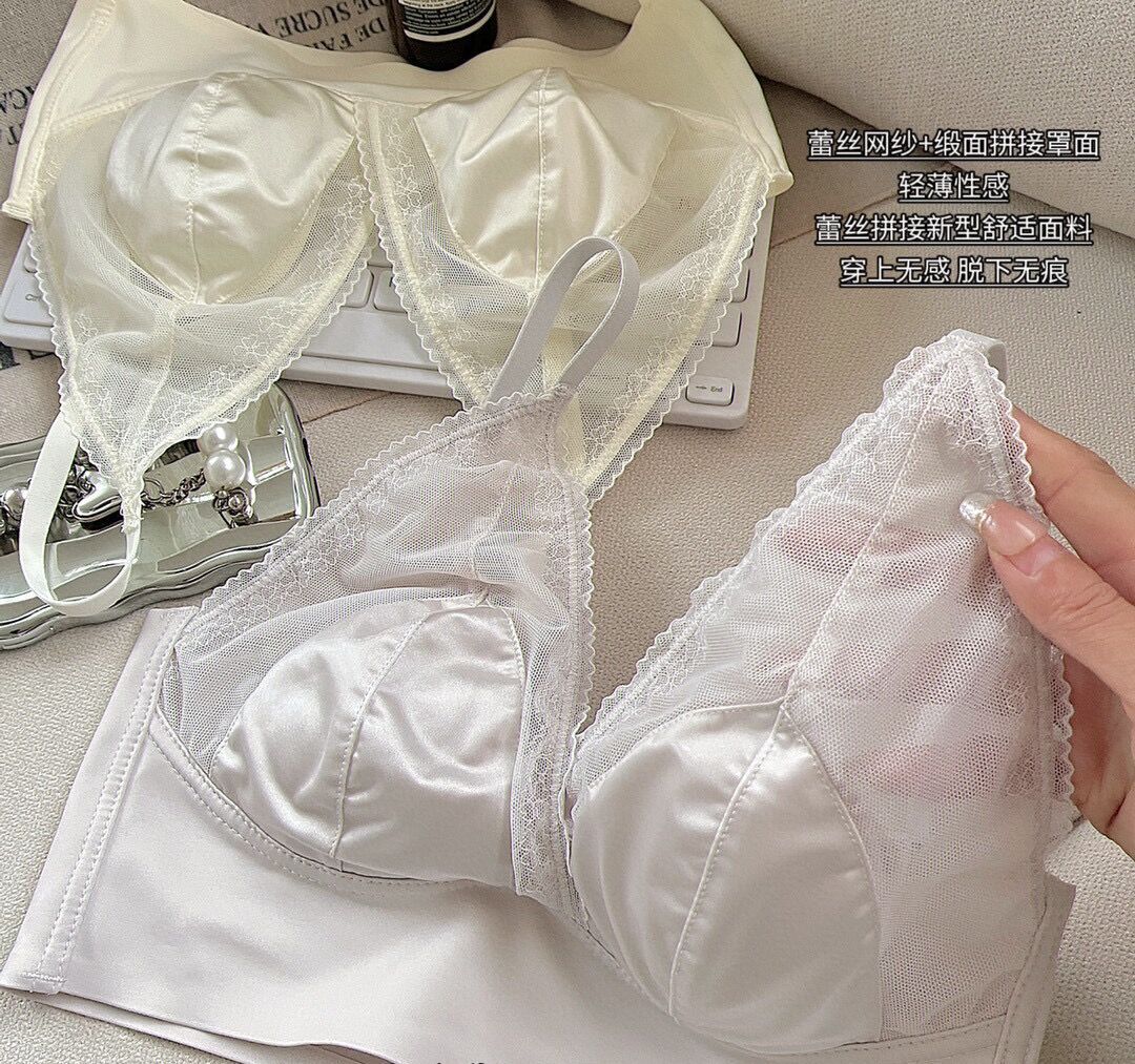 2315 레이스 새틴 스티칭 빛과 얇은 아름다운 등 속옷 토끼 귀 크리스탈 컵 큰 가슴 작은 통기성 피부 친화적 인 가슴 랩
