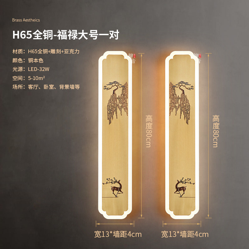 새로운 중국 스타일 벽 램프 구리 조각 중국 스타일 선 거실 배경 벽 램프 침실 침대 옆 미니멀리스트 엔지니어링 램프