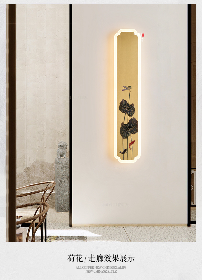 새로운 중국 스타일 벽 램프 구리 조각 중국 스타일 선 거실 배경 벽 램프 침실 침대 옆 미니멀리스트 엔지니어링 램프스토어 가기