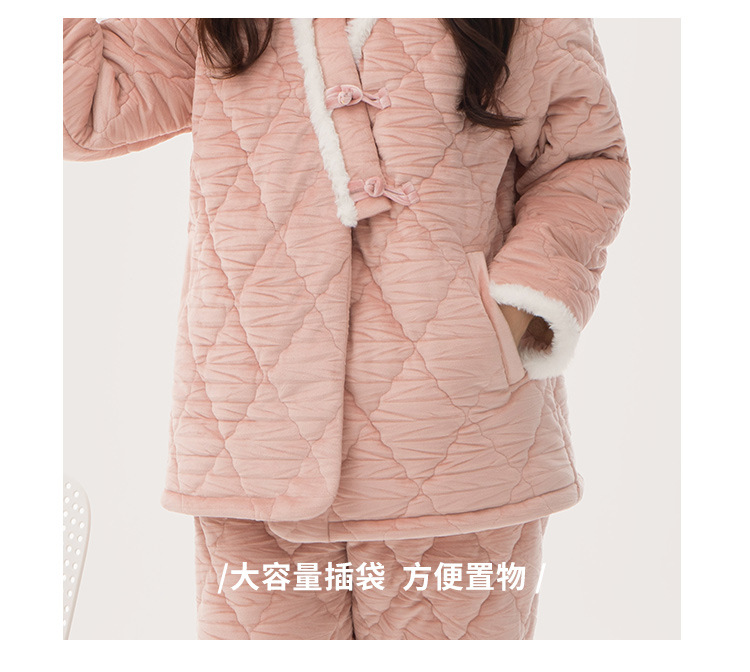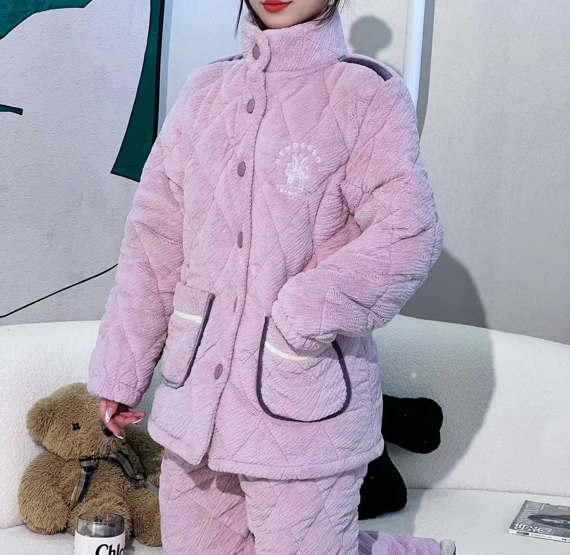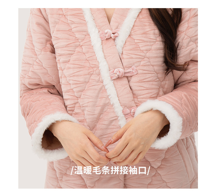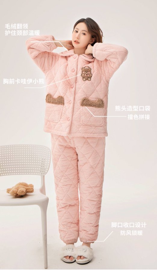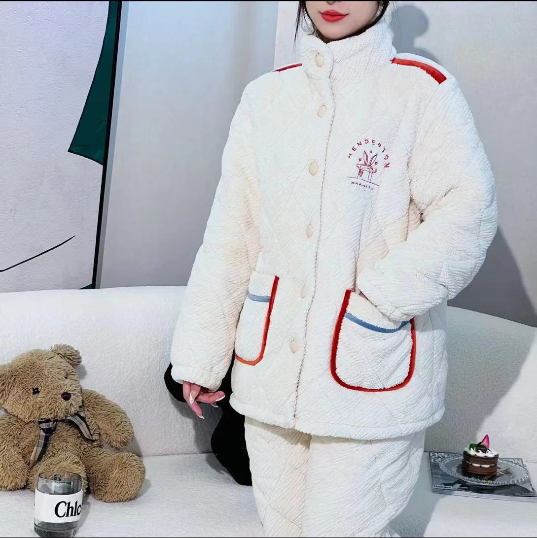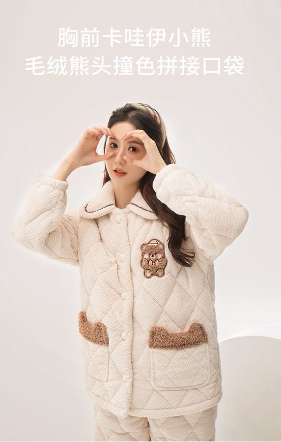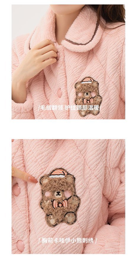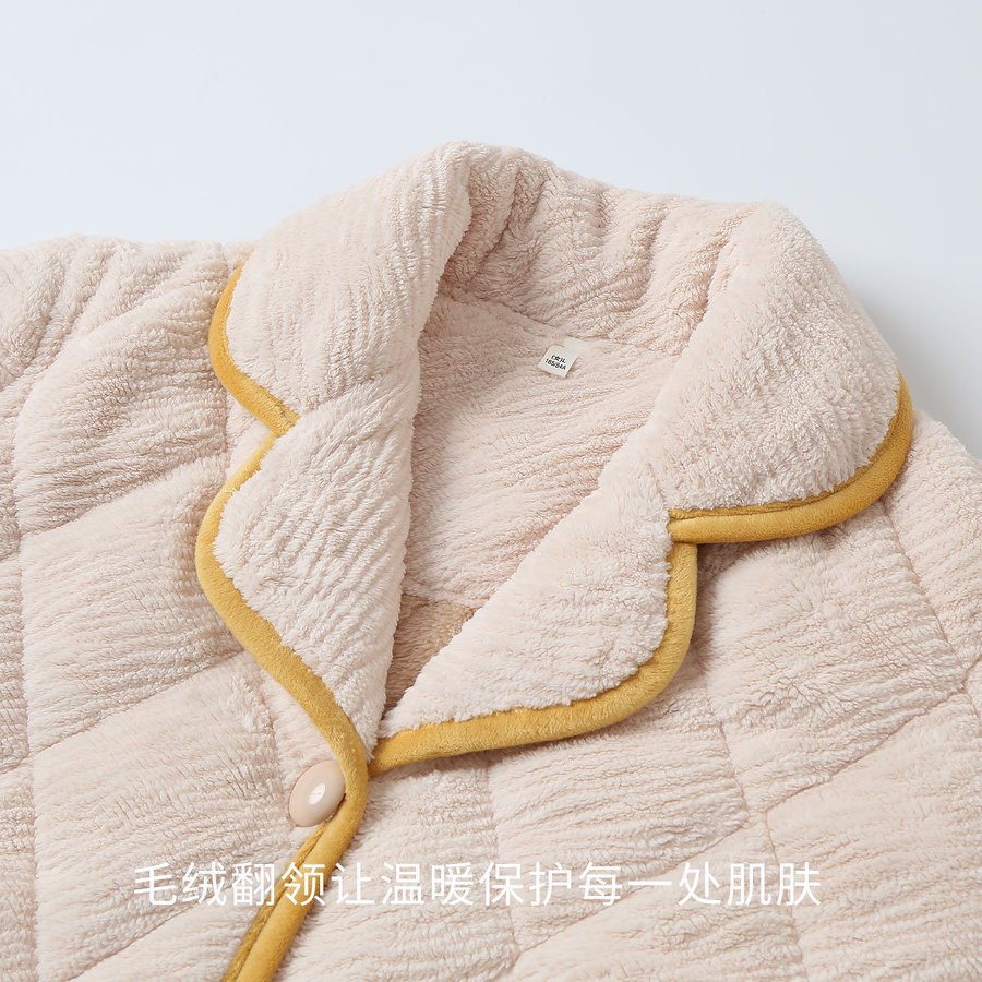 [브로큰 코드 혜택] 겨울 기모 두꺼워진 긴팔 잠옷 여성 느슨한 캐주얼 겉옷 벨벳 퀼트 세트