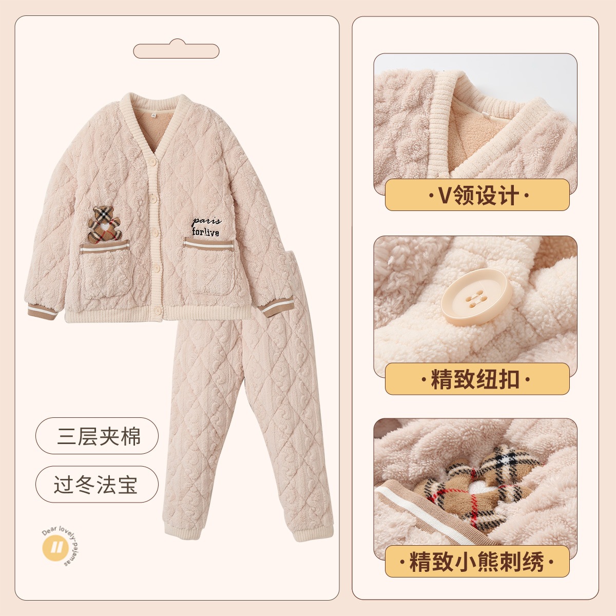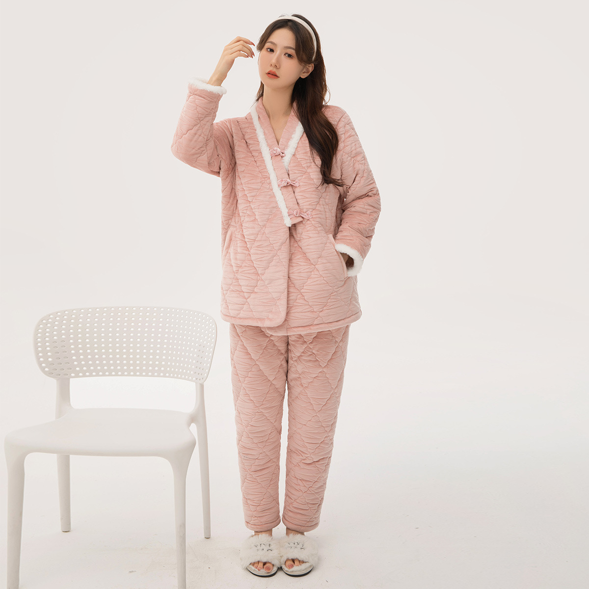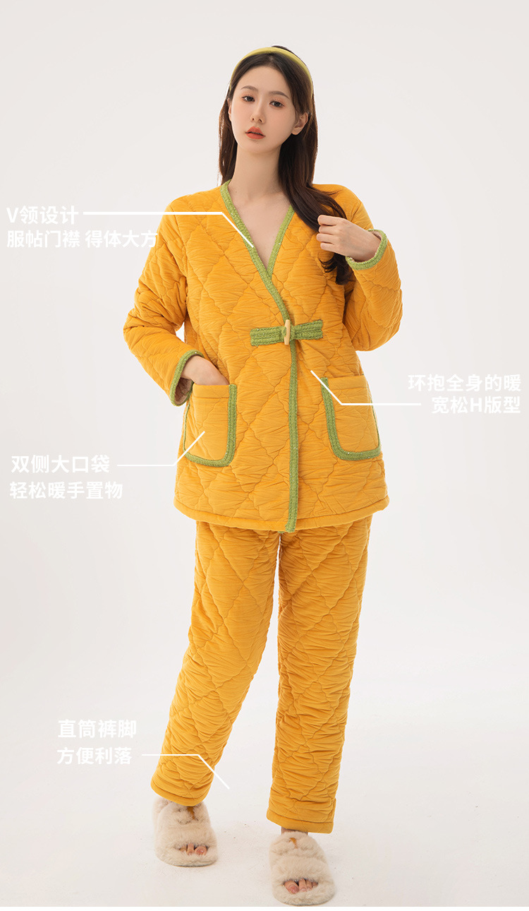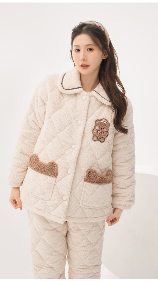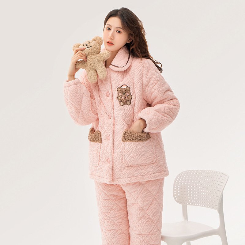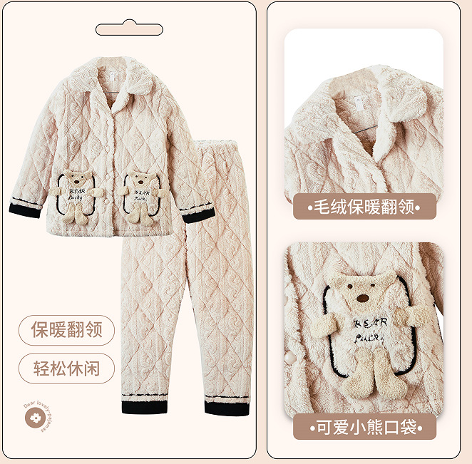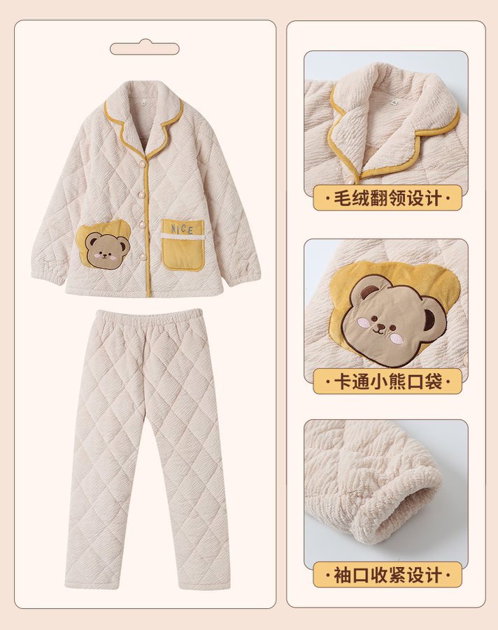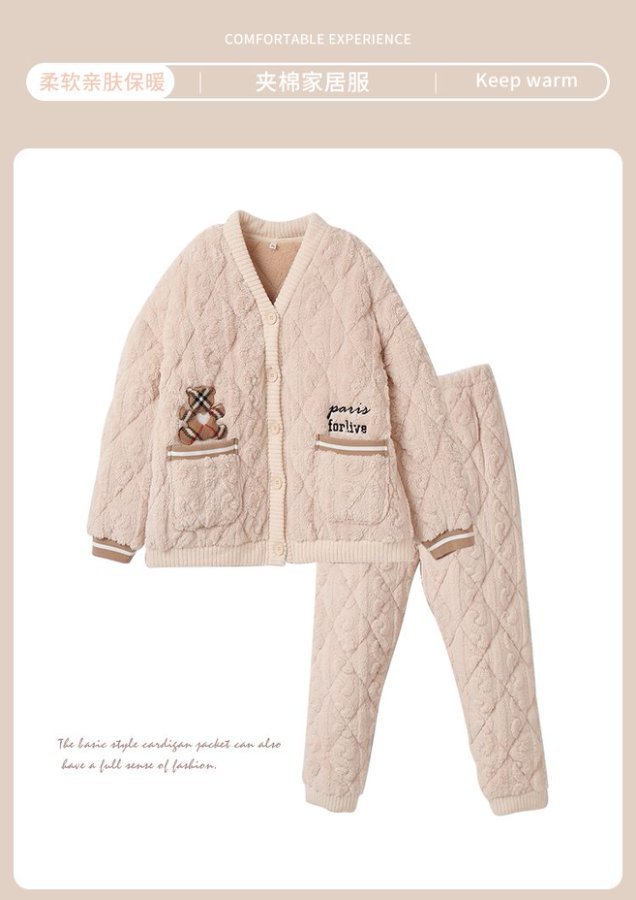 [브로큰 코드 혜택] 겨울 기모 두꺼워진 긴팔 잠옷 여성 느슨한 캐주얼 겉옷 벨벳 퀼트 세트