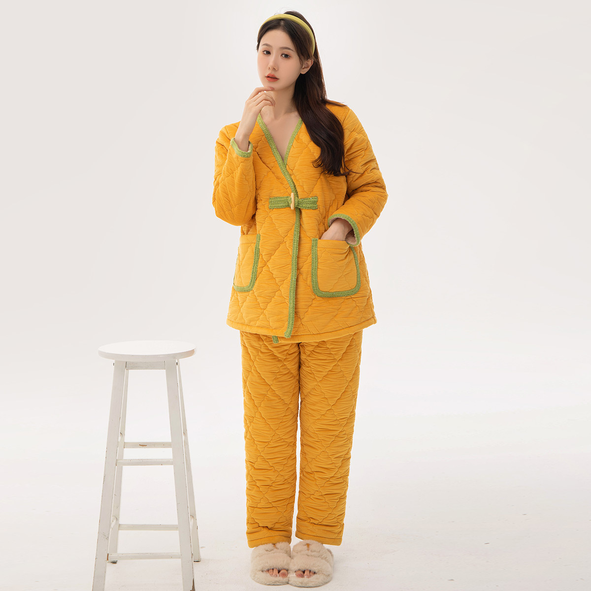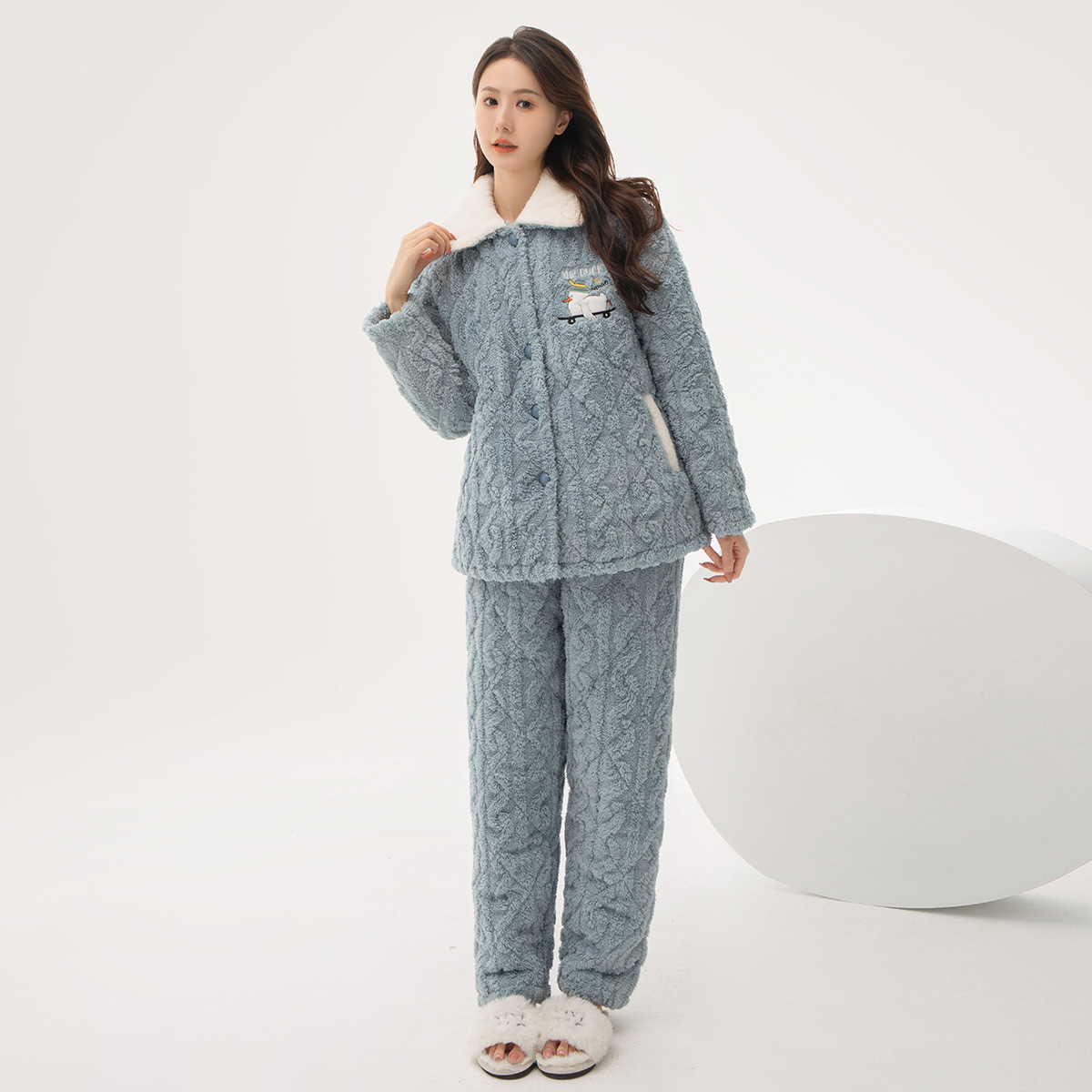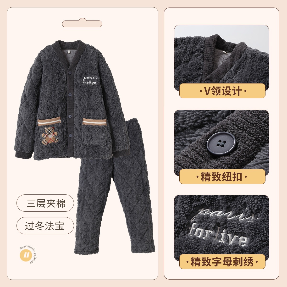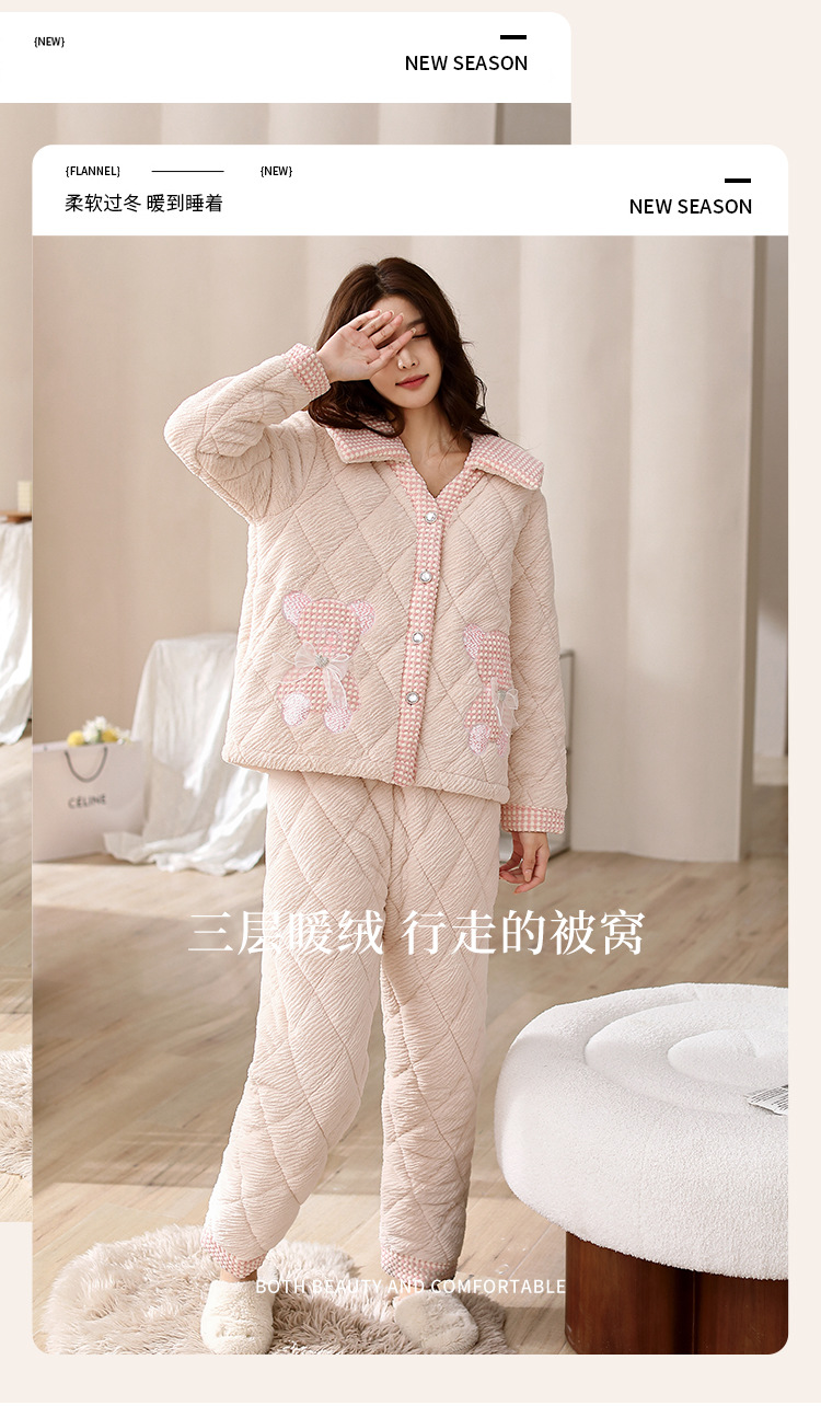 [브로큰 코드 혜택] 겨울 기모 두꺼워진 긴팔 잠옷 여성 느슨한 캐주얼 겉옷 벨벳 퀼트 세트스토어 가기
