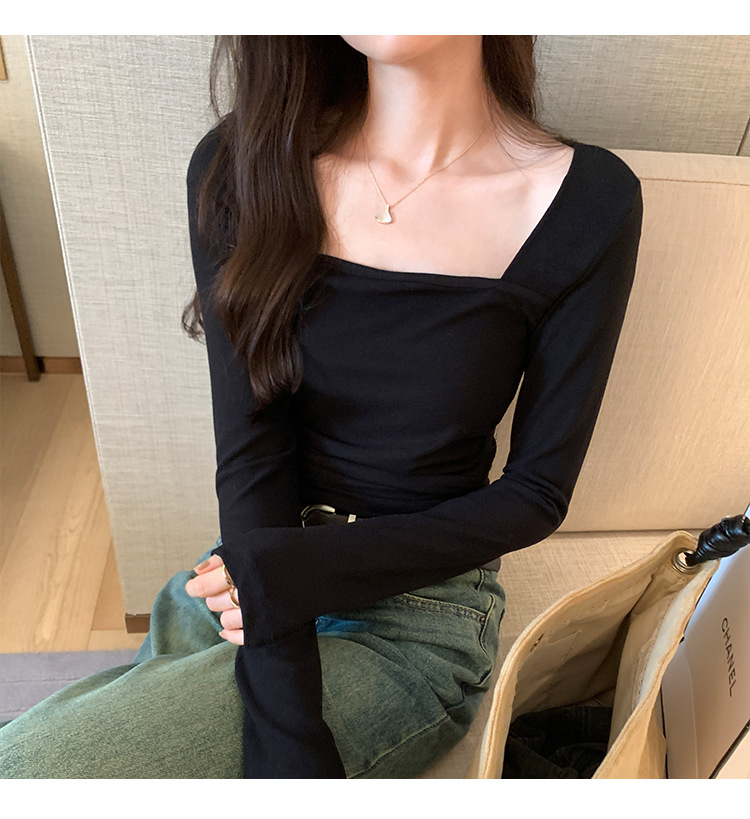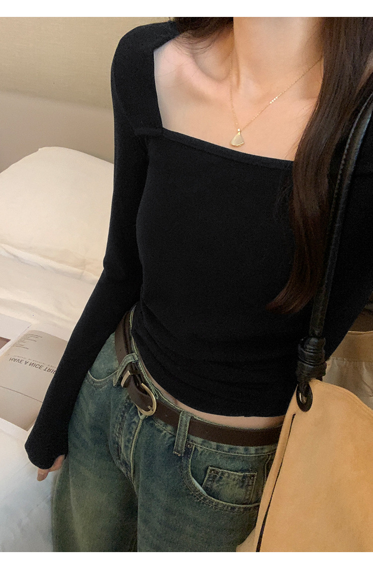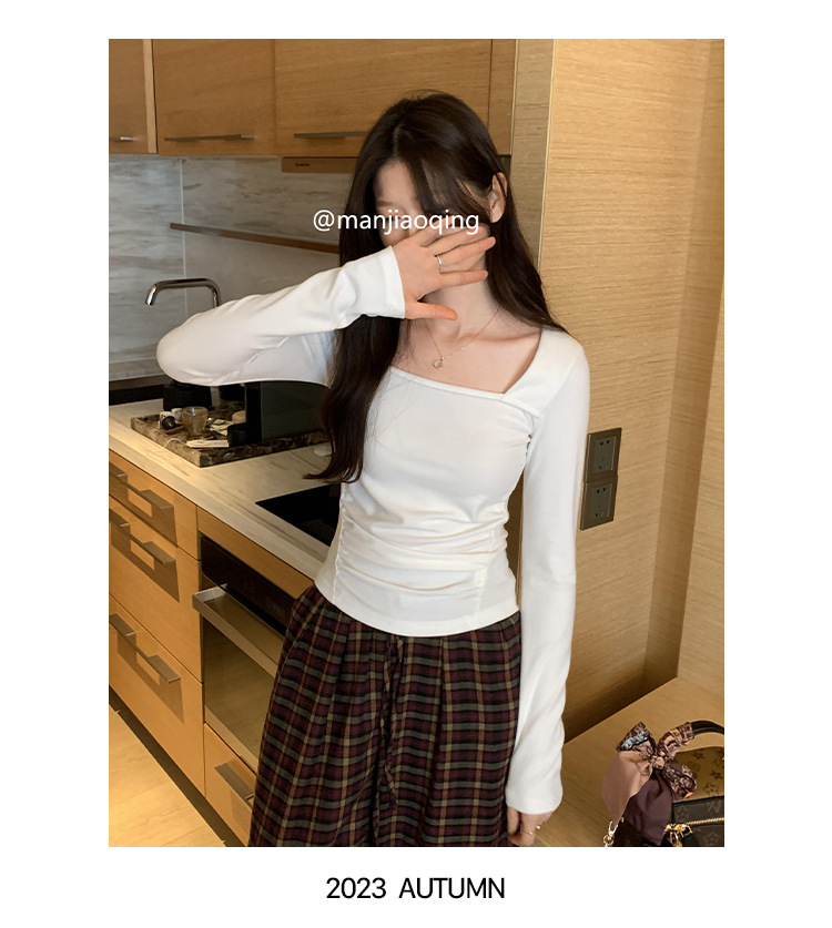 디자인 센스 순수한 욕망 스퀘어 칼라 코듀로이 긴팔 티셔츠 여성용 봄과 가을 새로운 주름진 허리 내베이스 셔츠 탑스토어 가기