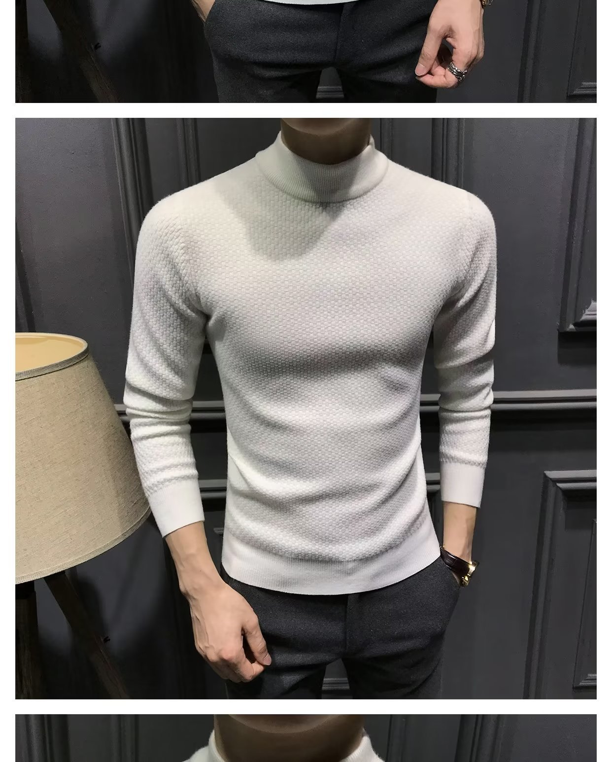 스웨터 남성 가을과 겨울 패션 브랜드 하이 엔드 하프 터틀넥 내부 니트 바닥 셔츠 남성용 슬림 캐주얼 스웨터 탑스토어 가기