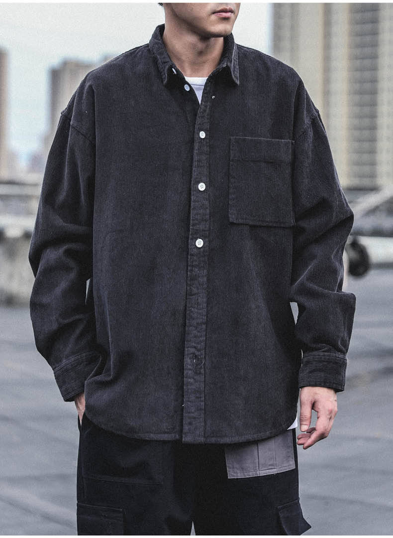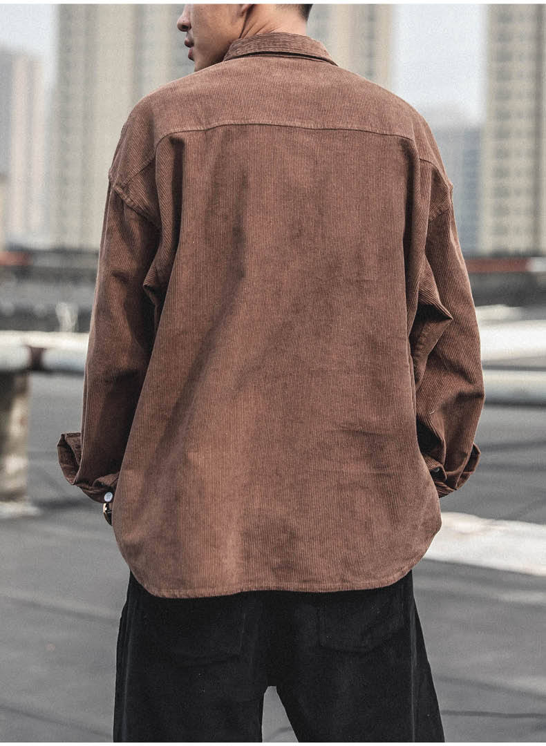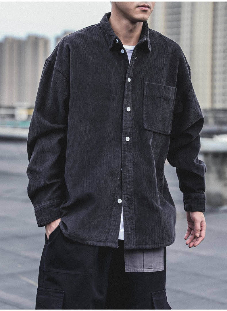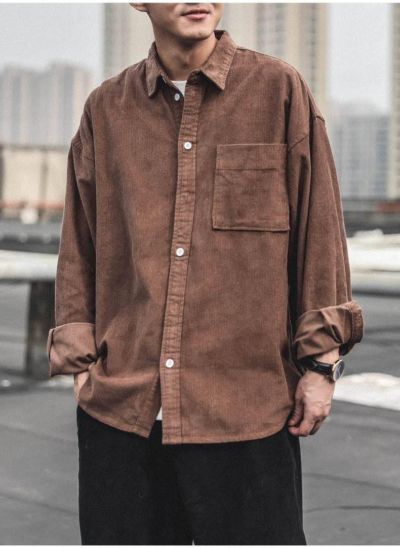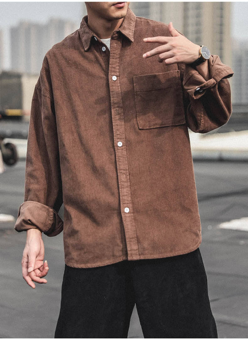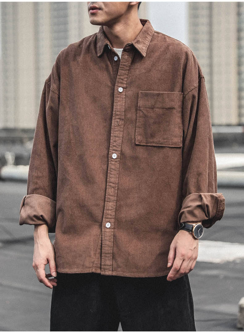 코듀로이 셔츠 남성 긴팔 가을 일본 패션 브랜드 캐주얼 느슨한 남성 가을과 겨울 두꺼운 셔츠 남성 코트스토어 가기