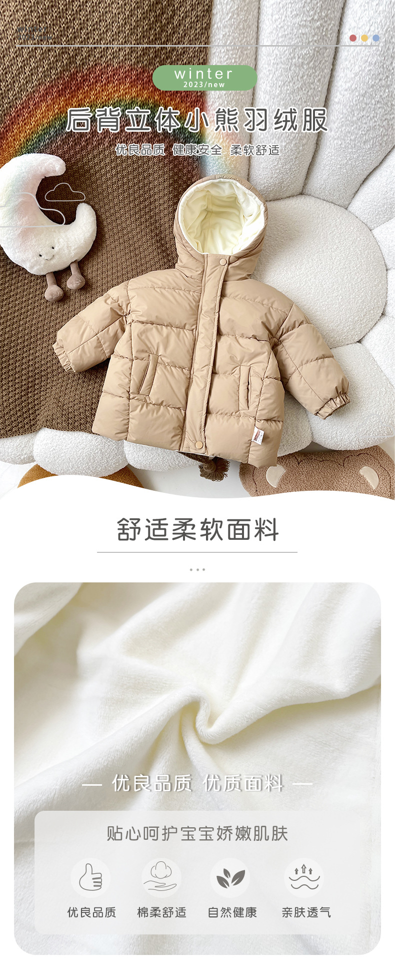 [재고] DW239813 겨울 새 어린이 다운 재킷 새로운 국가 표준 90 흰색 오리 아래 중간 길이 후드 외부스토어 가기