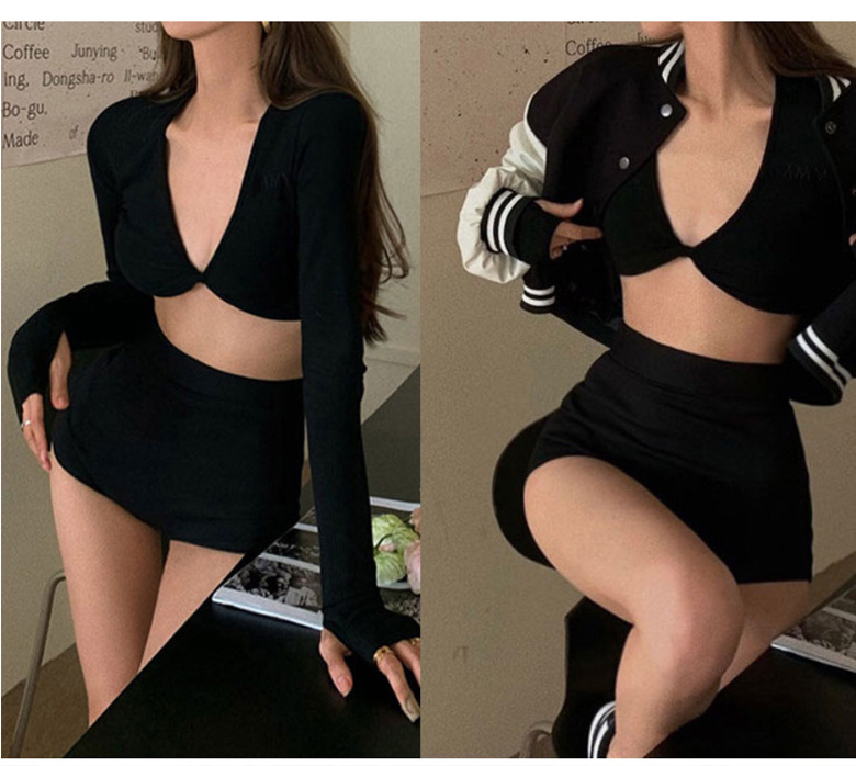 2024 스포츠 수영복 여성 스플릿 한국 스타일 긴팔 탑 커버 배꼽 슬리밍 온천 수영 세트 보수스토어 가기