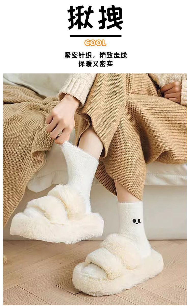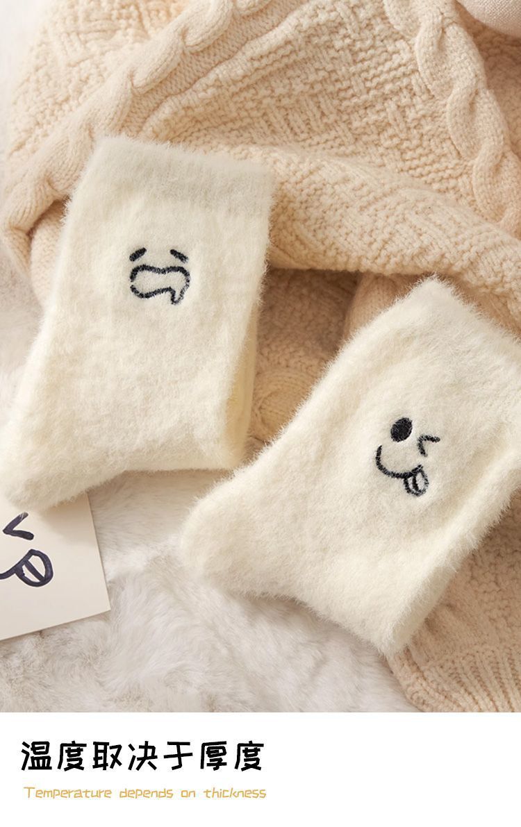 밍크 양말 여성의 가을과 겨울 두꺼운 따뜻한 흰색 송아지 모피 기모 일본 재미있는 표현 수면 양말스토어 가기