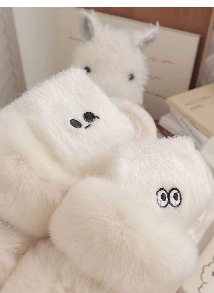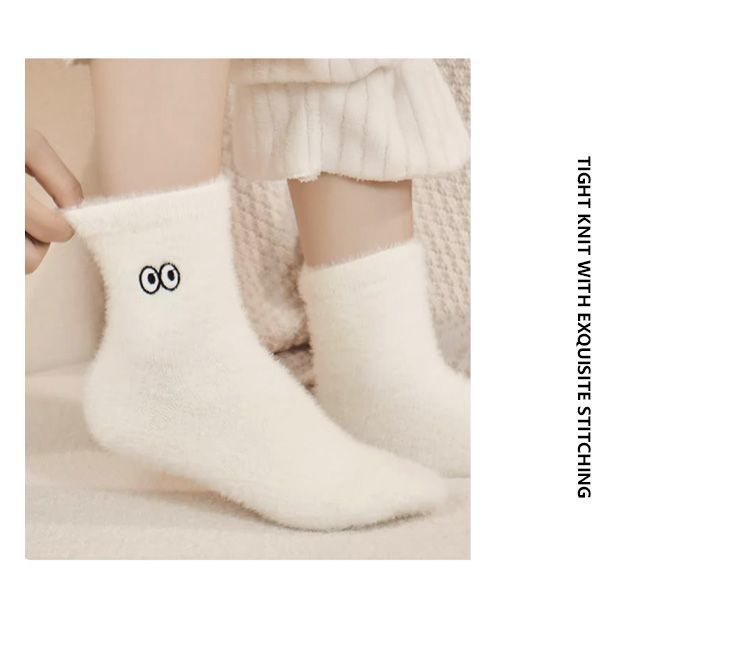 밍크 양말 여성의 가을과 겨울 두꺼운 따뜻한 흰색 송아지 모피 기모 일본 재미있는 표현 수면 양말