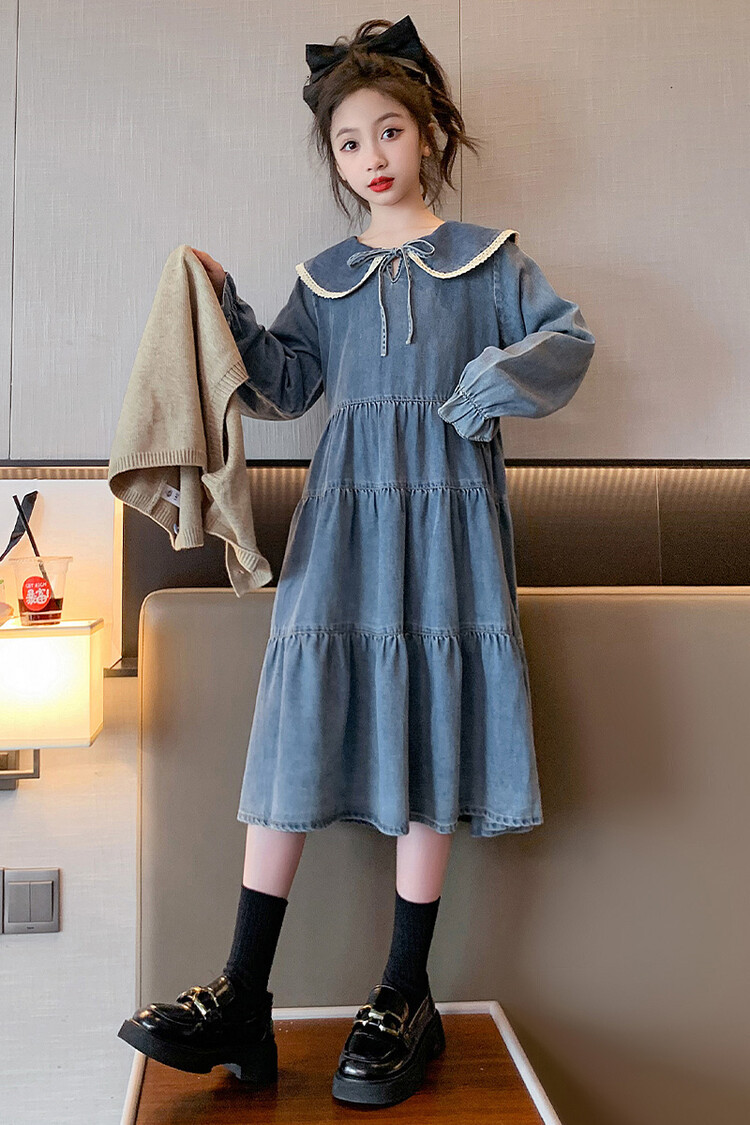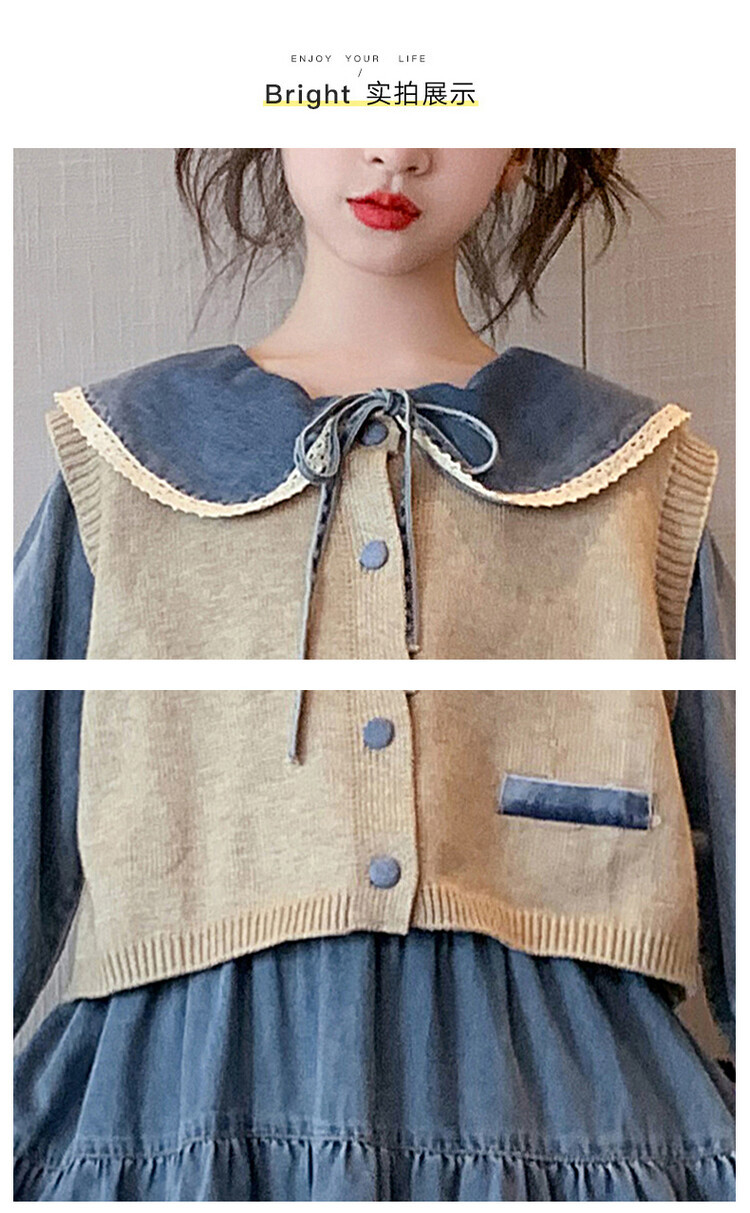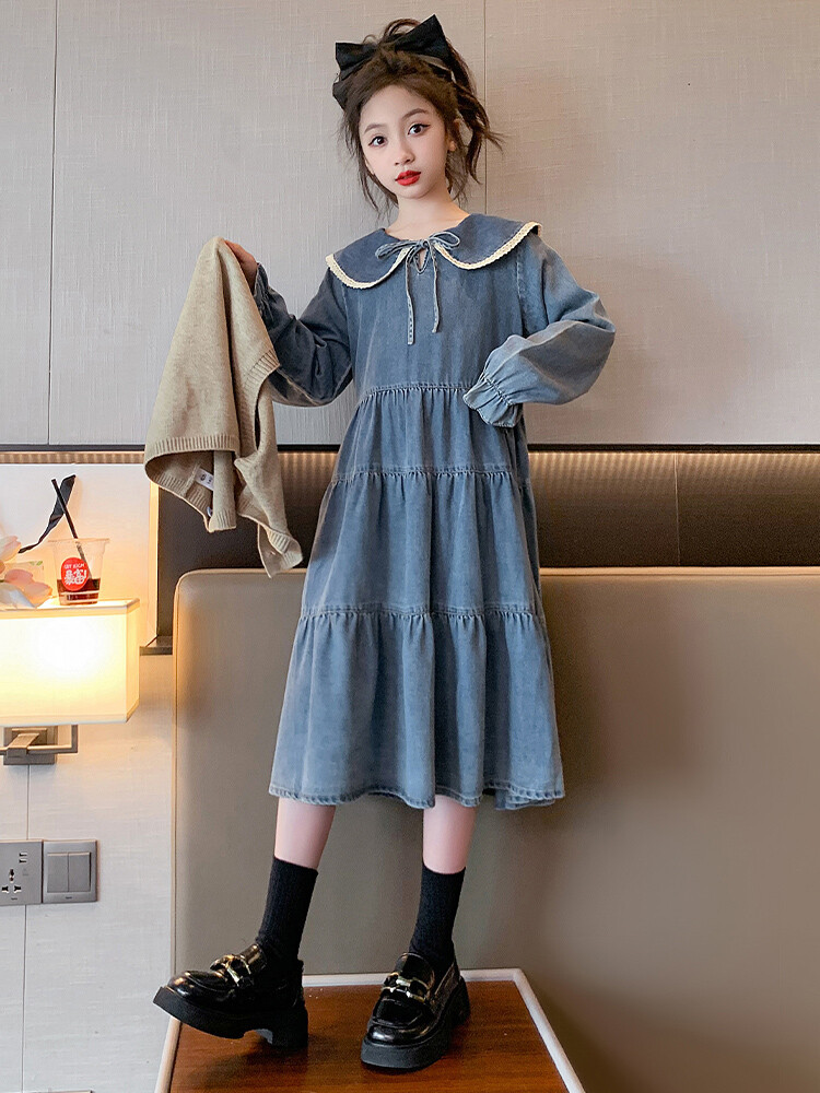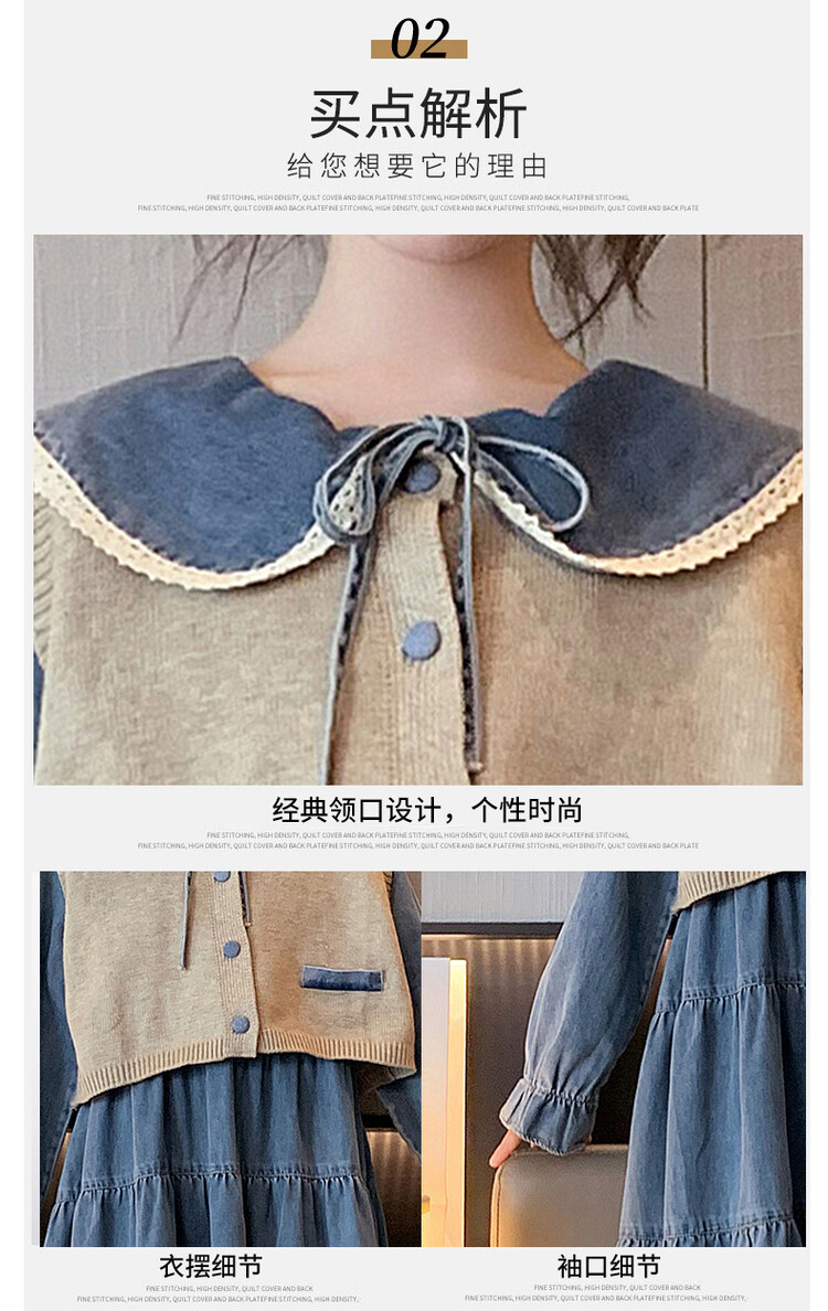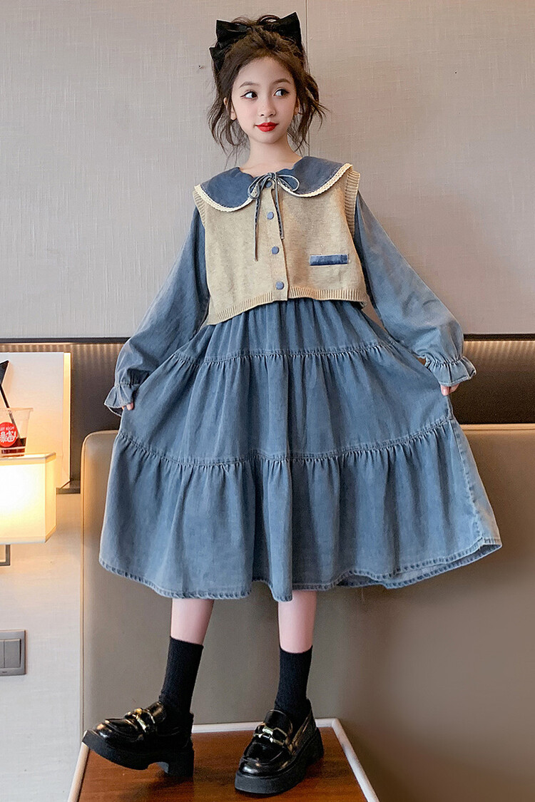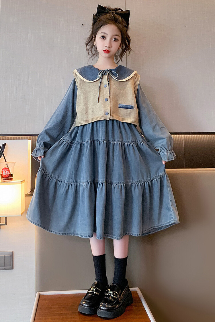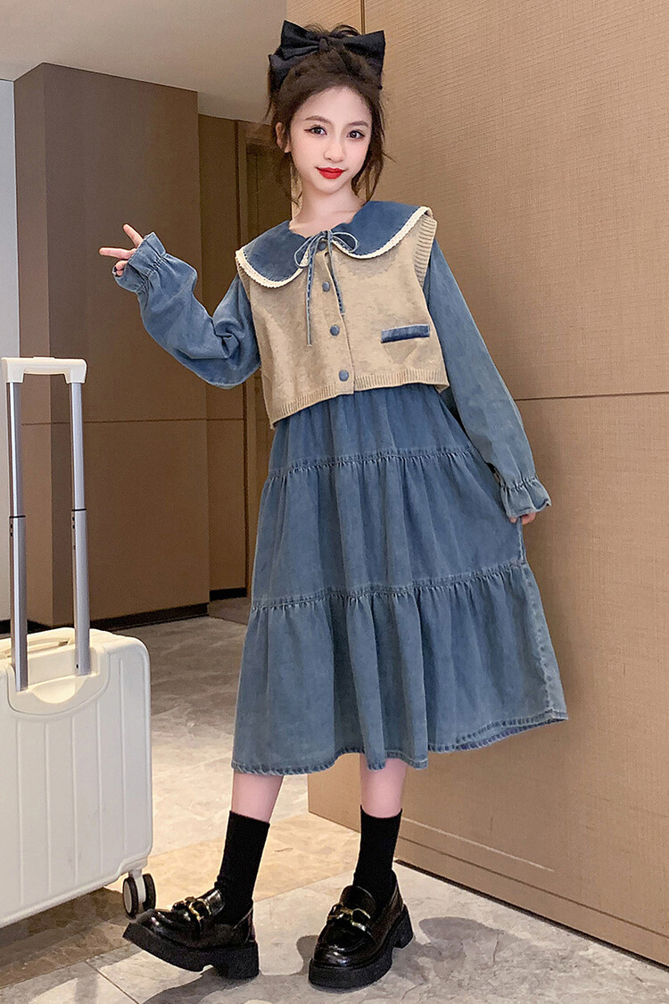 봄과 가을 새로운 소녀들의 원피스 스웨터 조끼 데님 원피스 투피스 달콤한 캐주얼 소녀 스커트스토어 가기