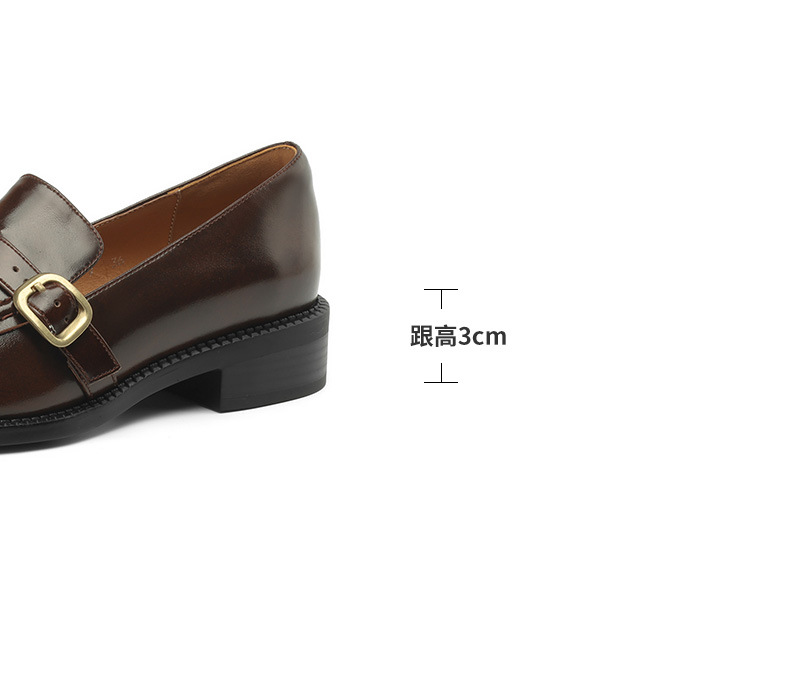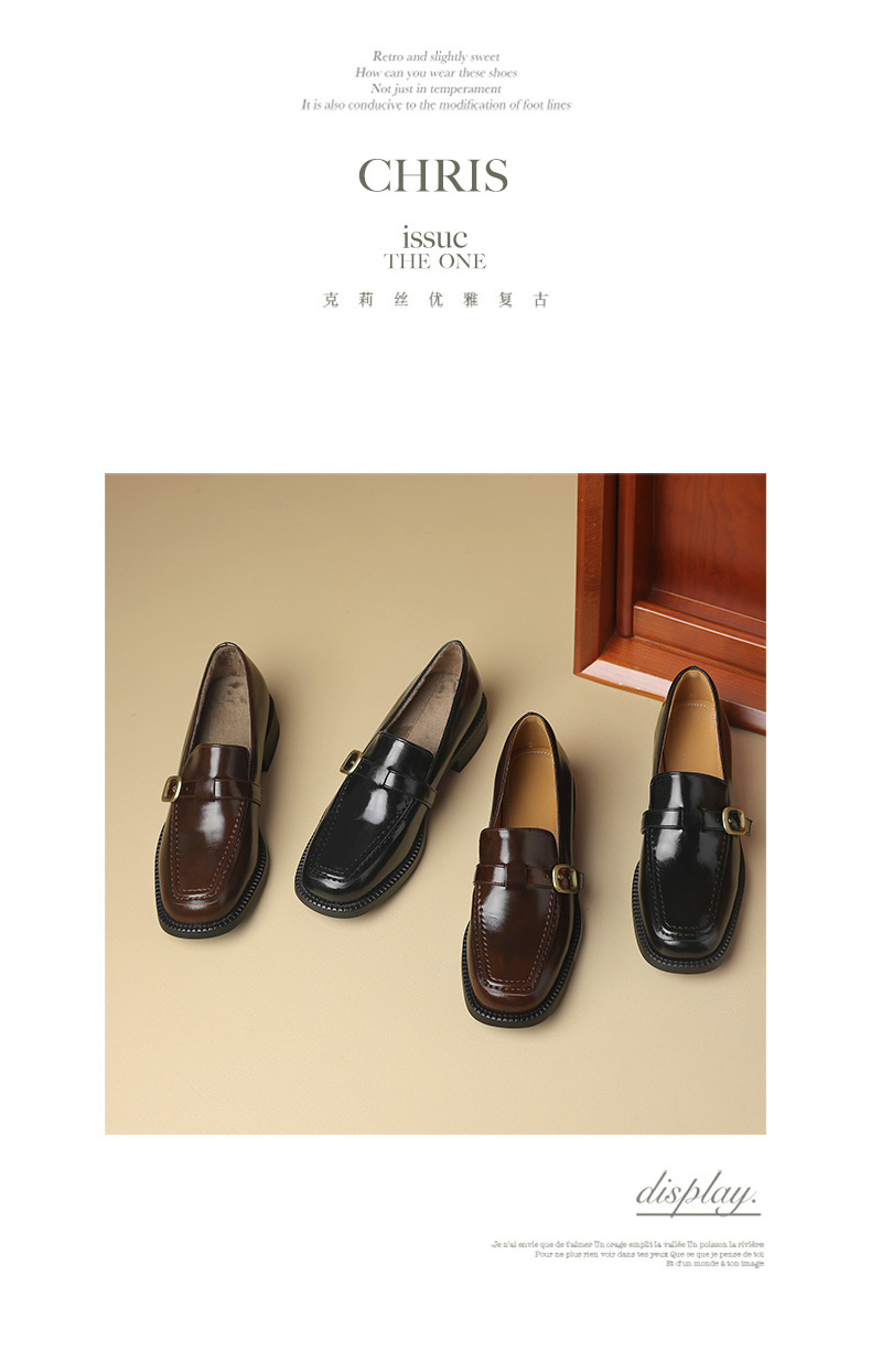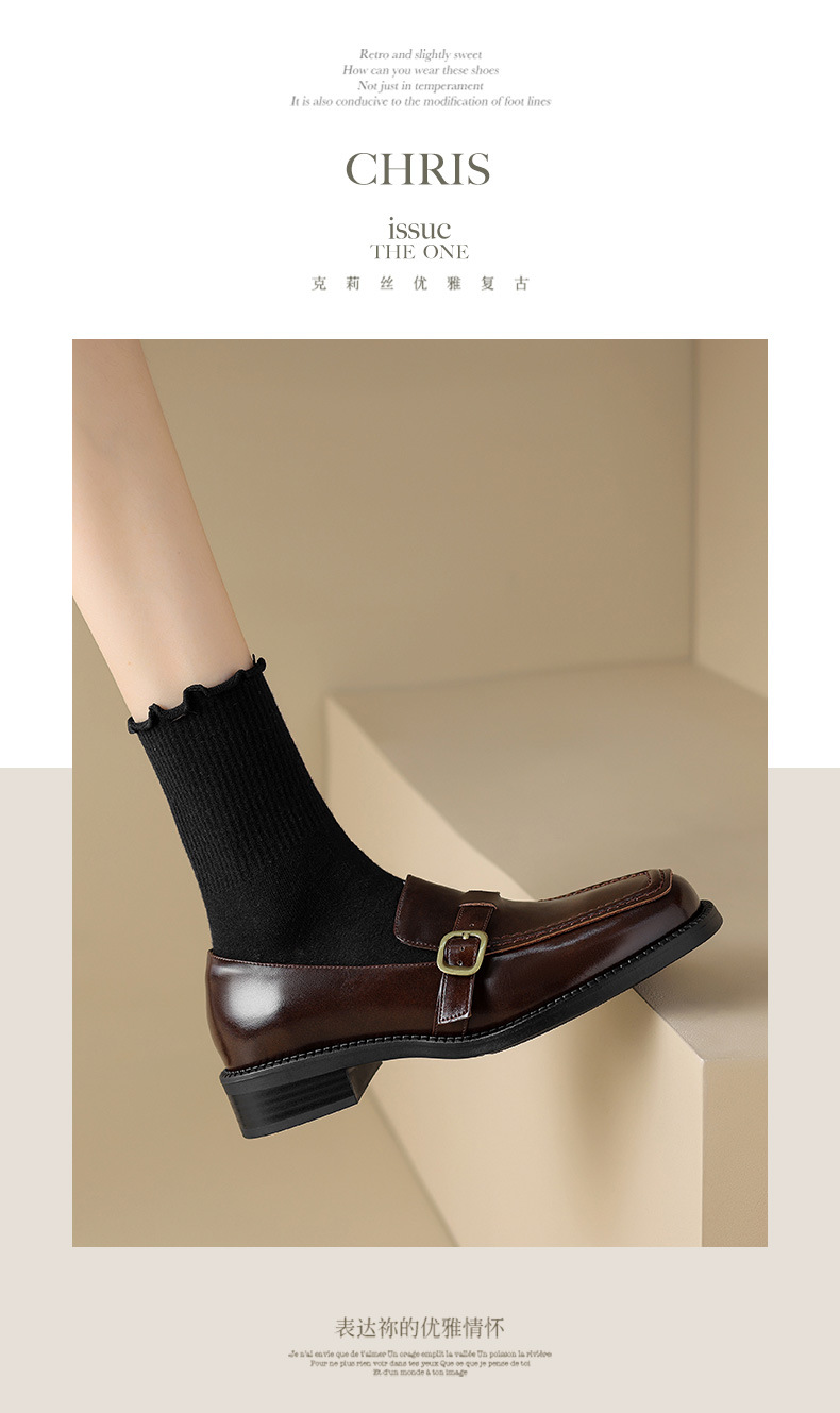 영국 스타일 벨트 버클 로퍼 2024 이른 봄 스퀘어 토 가죽 신발 복고풍 청키 힐 싱글 레이어 신발 여성용 미드 힐 플러스 사이즈스토어 가기