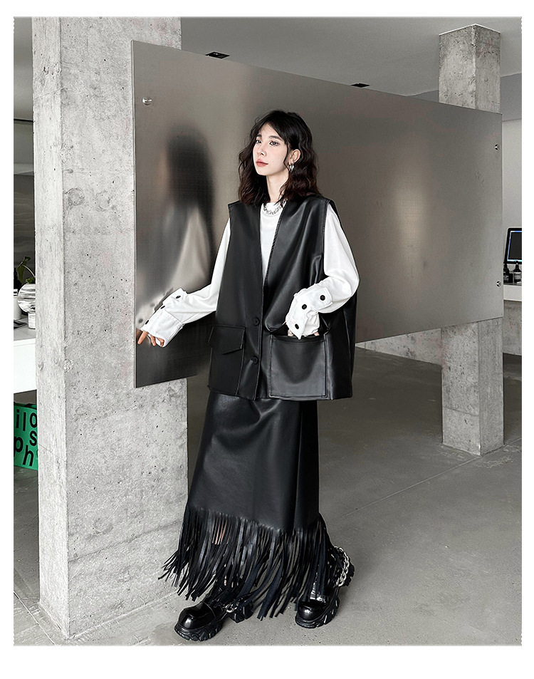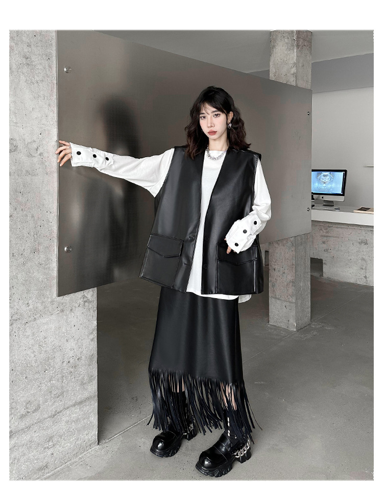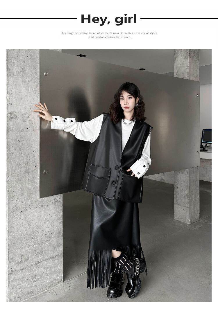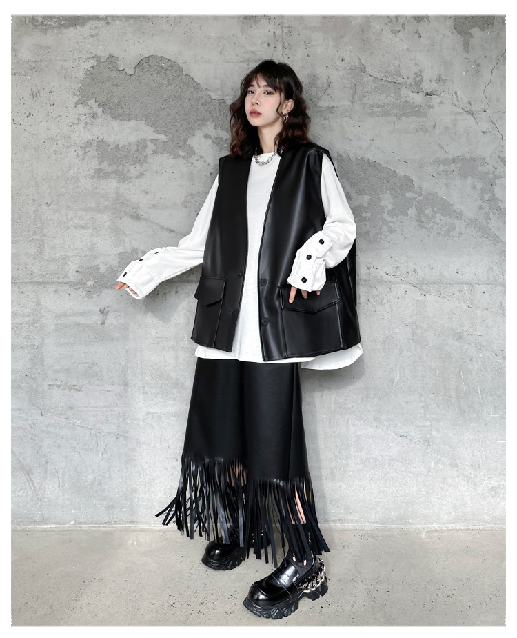 빈티지 홍콩 스타일 솔리드 컬러 퍼가죽 V 넥 조끼 여성의 봄과 가을 새로운 느슨한 쌓인 캐주얼 조끼 재킷스토어 가기