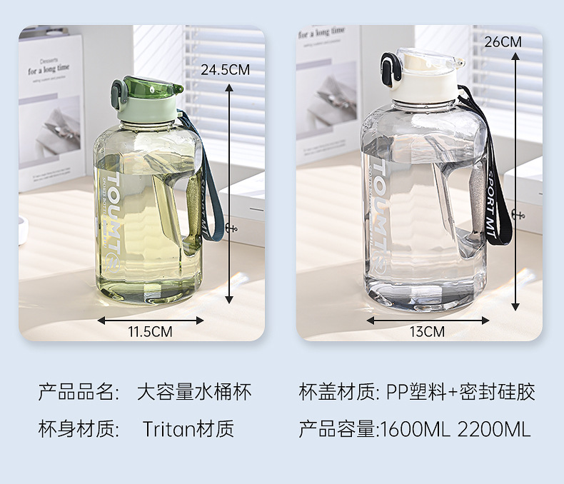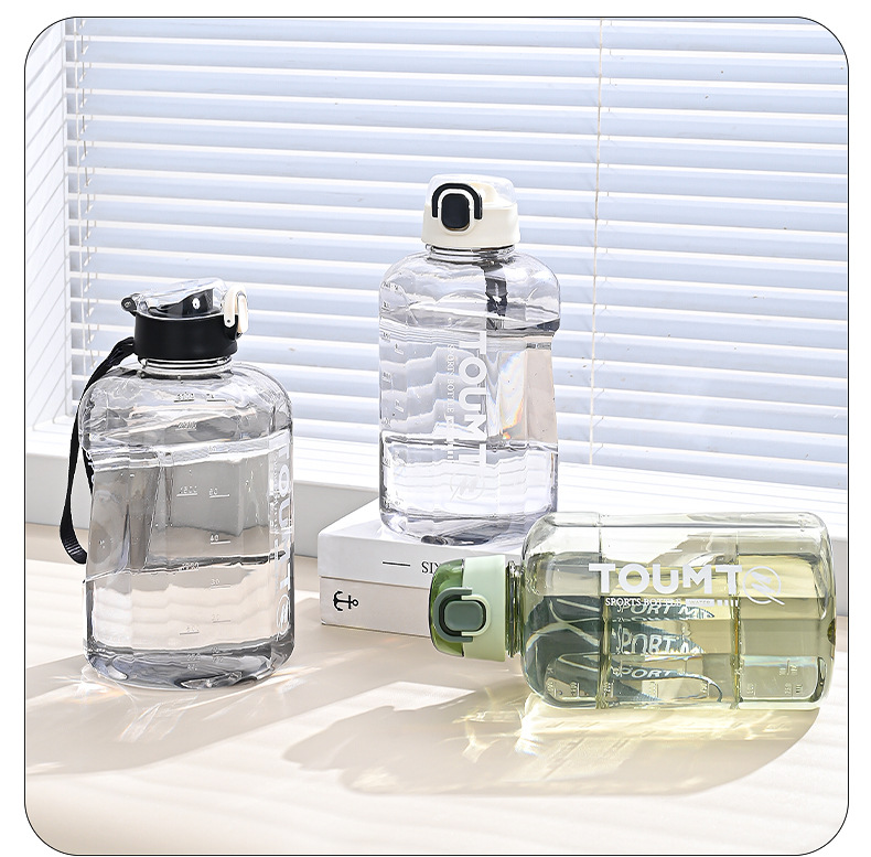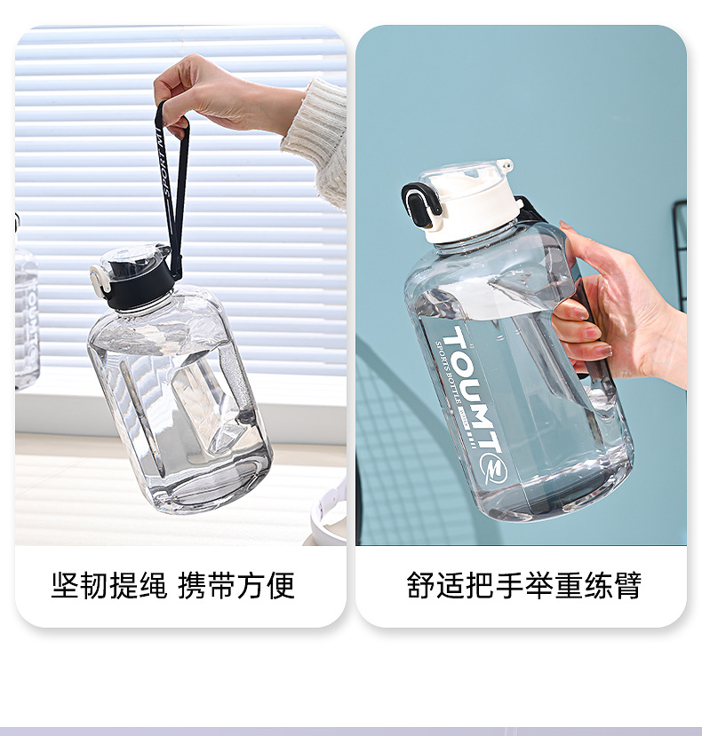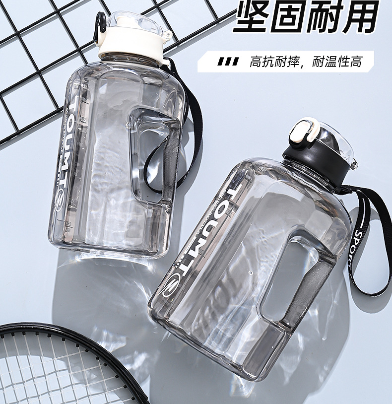 대용량 물통, 스포츠 피트니스용 고온 방지 대용량 컵, 손잡이가 있는 직접 마시는 플라스틱 물컵