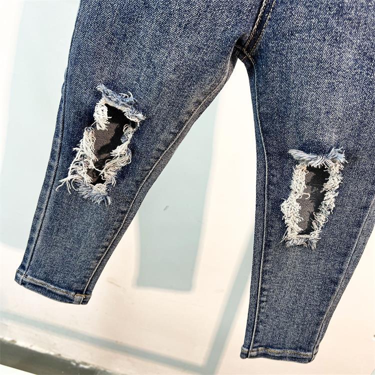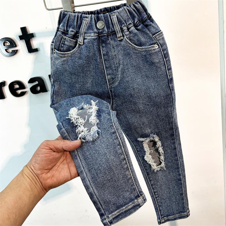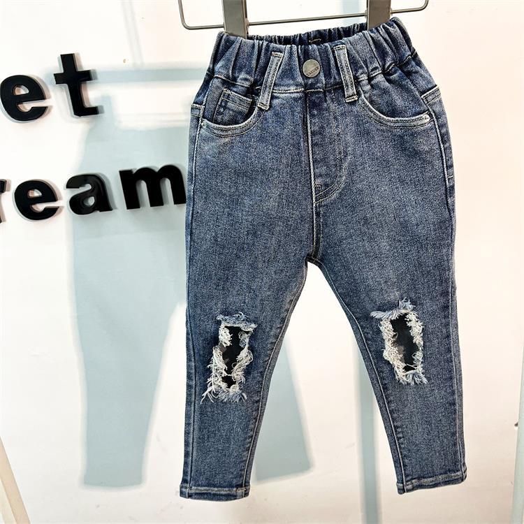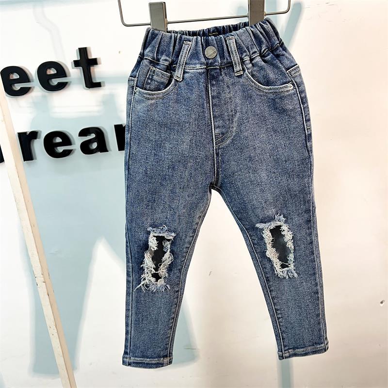 2024 봄 새로운 어린이 청바지 중소 소년 소녀 순수한면 높은 탄성 찢어진 슬림 핏 바지스토어 가기