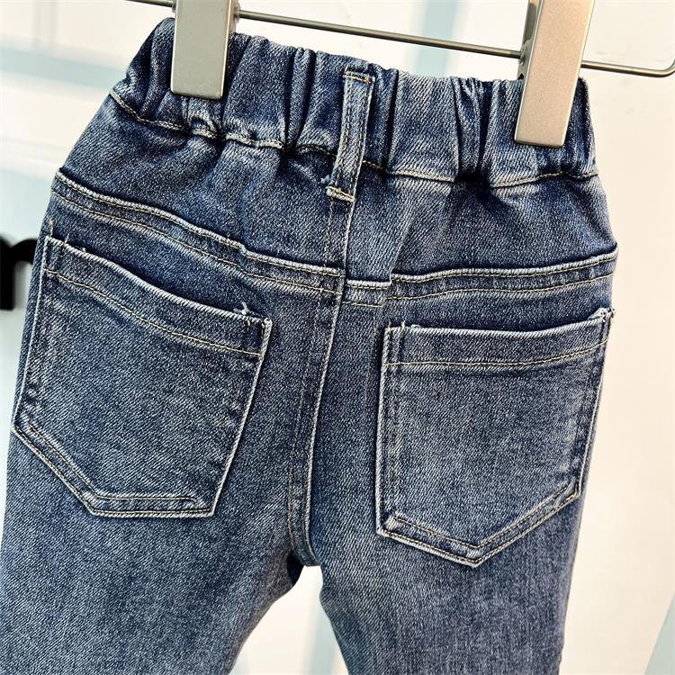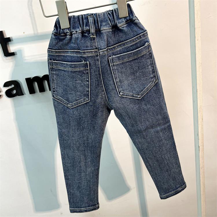 2024 봄 새로운 어린이 청바지 중소 소년 소녀 순수한면 높은 탄성 찢어진 슬림 핏 바지