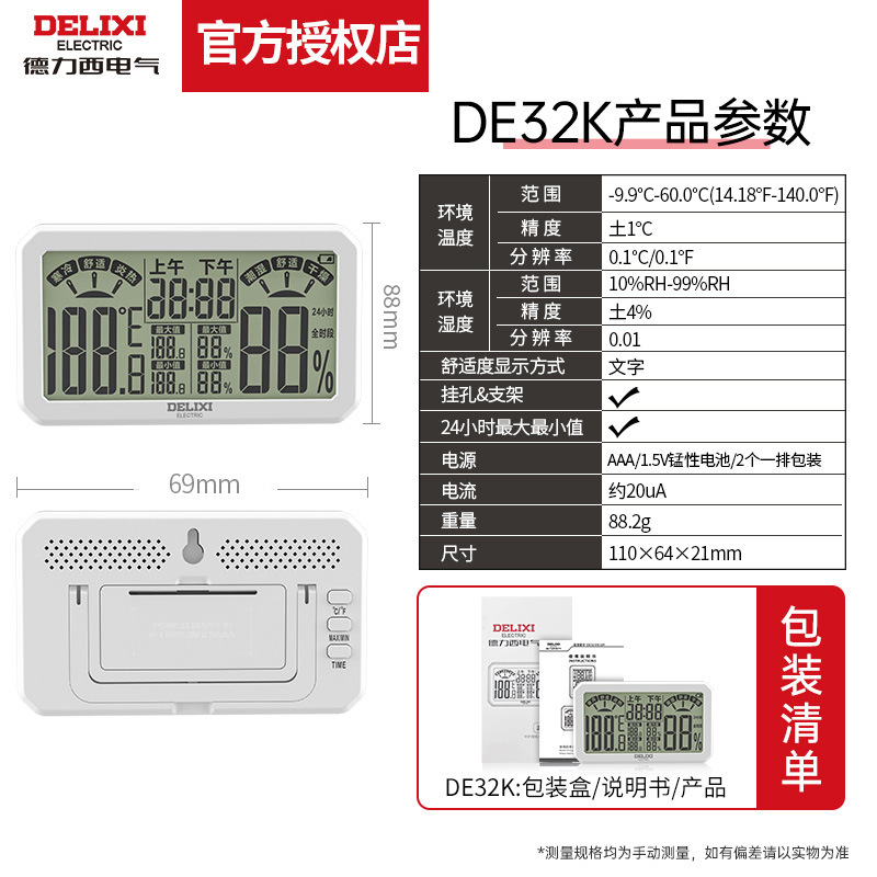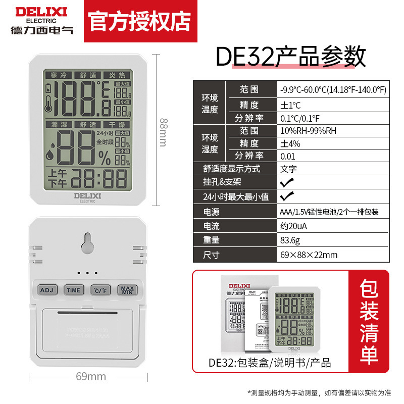 Delixi 전기 고정밀 미니 온도계 온도계 실내 가정용 베이비 룸 벽 장착 DE31/K스토어 가기