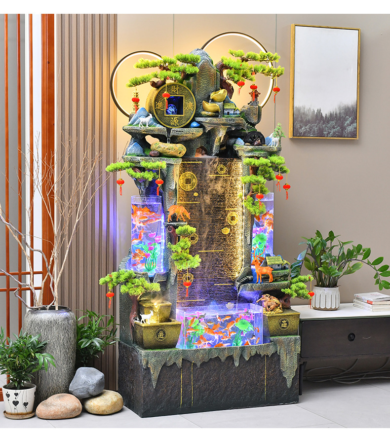 가짜 바위 물고기 탱크 순환 물 분수 장식품 간단한 거실 홈 입구 조경 사무실 오프닝 선물