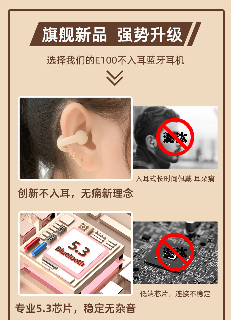 E100 국경 새로운 개인 모델 무선 뼈 전도 개념 높은 음질 비 귀 블루투스 스포츠 헤드셋스토어 가기
