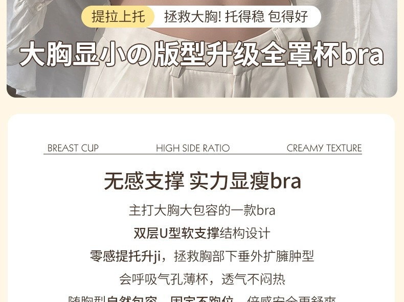 여성용 얇은 풀업 원활한 속옷, 큰 가슴, 작은, 강철 반지 없음, 유방 수집, 처짐 방지, 플러스 사이즈 브래지어스토어 가기