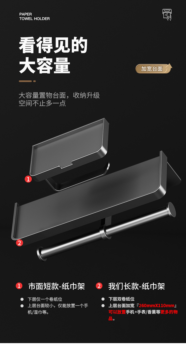 • 블랙 - 롤 화장지 걸이 [2구 연장형]