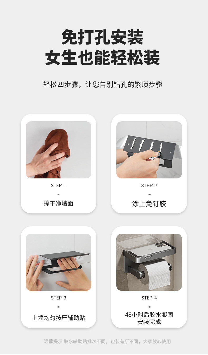 화장실 티슈 박스 롤 페이퍼 홀더 욕실 티슈 보관함 무타공 화장지 박스 벽걸이형 티슈 홀더