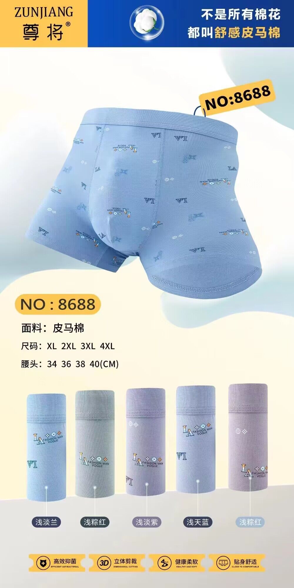 Zun 일반 8716 남성 복서 반바지 가죽 말면 편안한 통기성 바닥 가랑이 부드러운 플러스 사이즈 밝은 색상의 속옷 복서 반바지